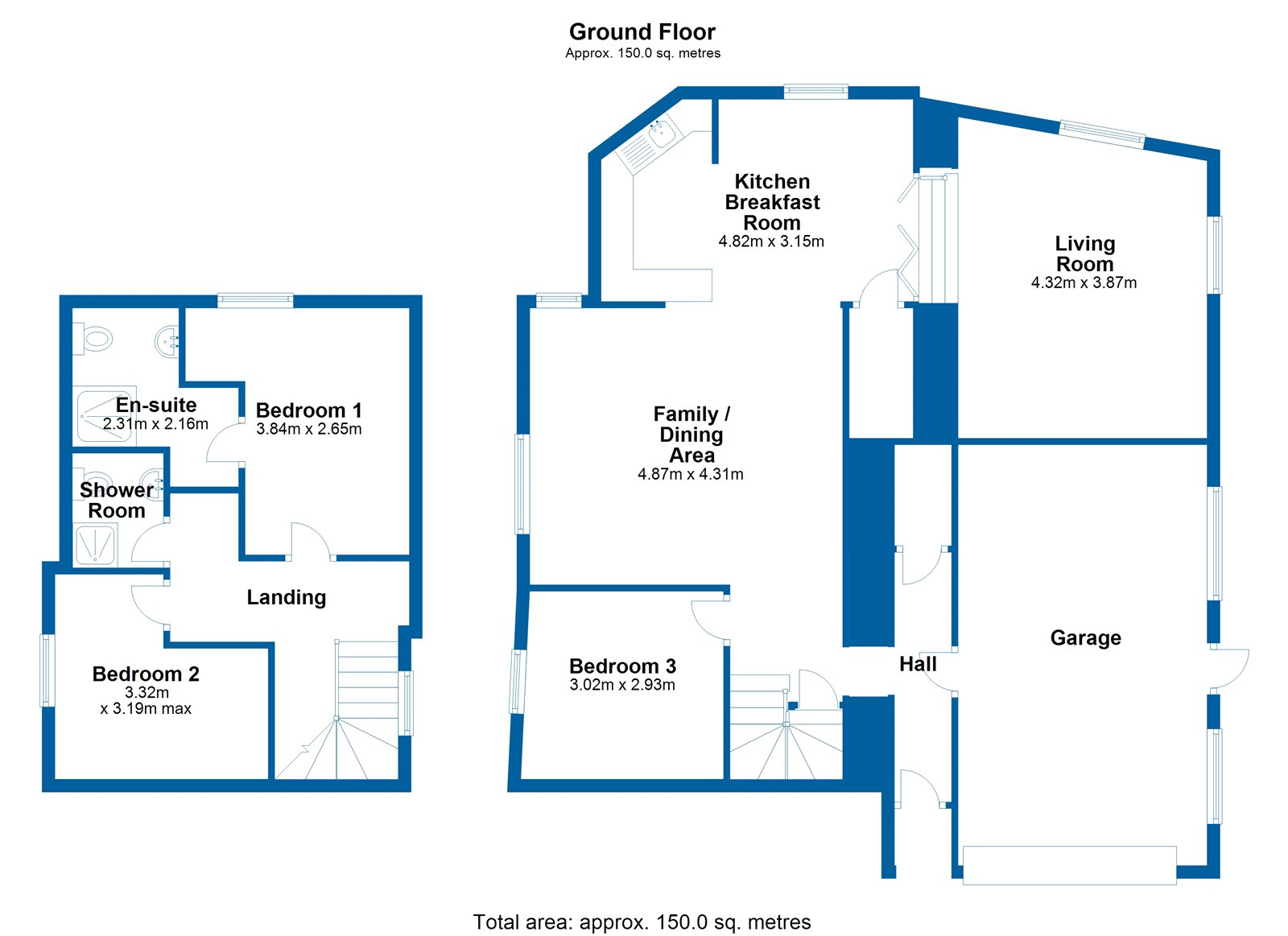 Heading upstairs, the landing is well-lit by a side window and provides access to the two main bedrooms and the family bathroom.