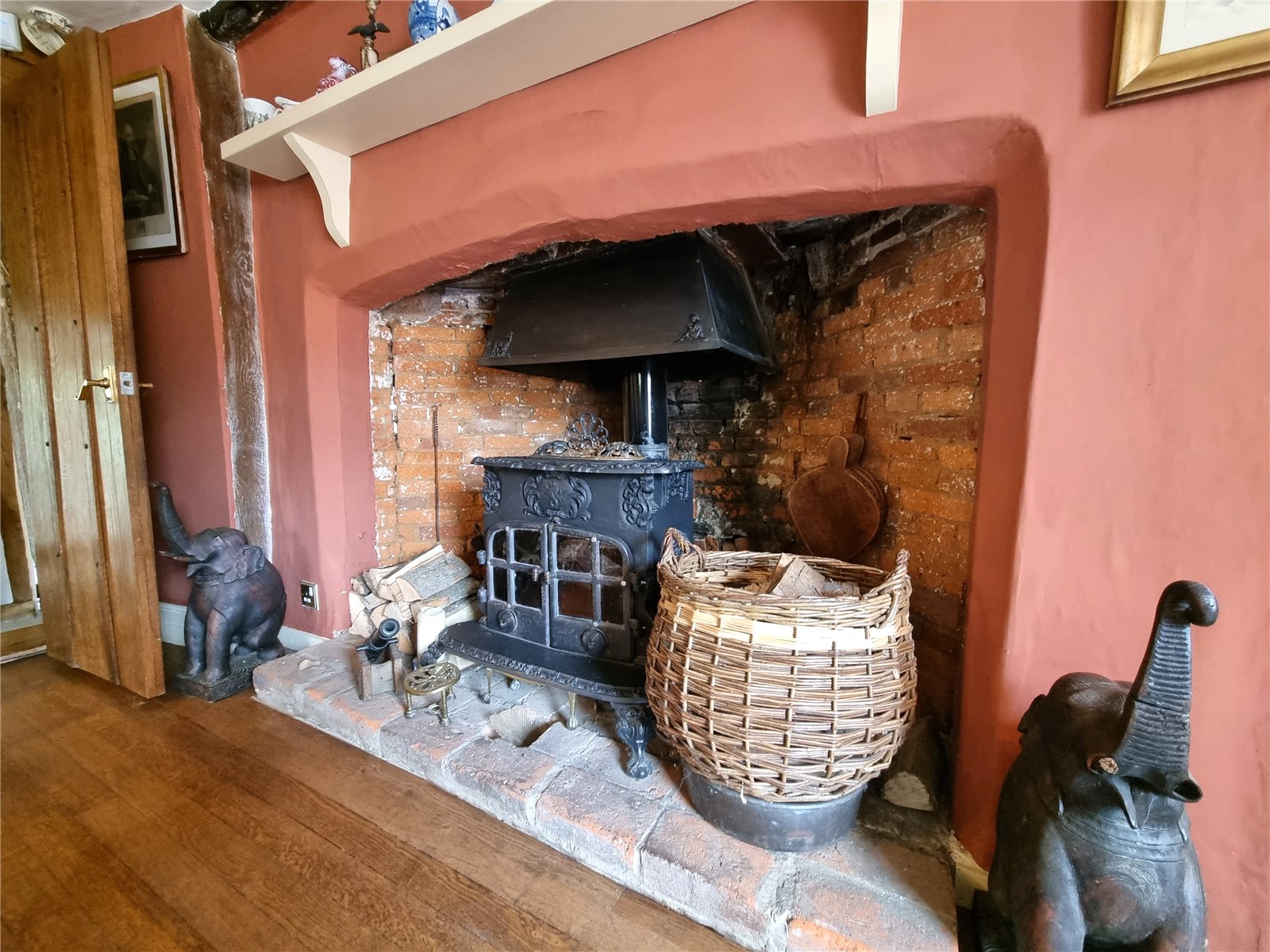 Stepping through the centrally positioned front door, you are welcomed into two elegant reception rooms, each with an open fireplace. The dining room is particularly impressive, featuring a large exposed inglenook with an ornate wood burner.