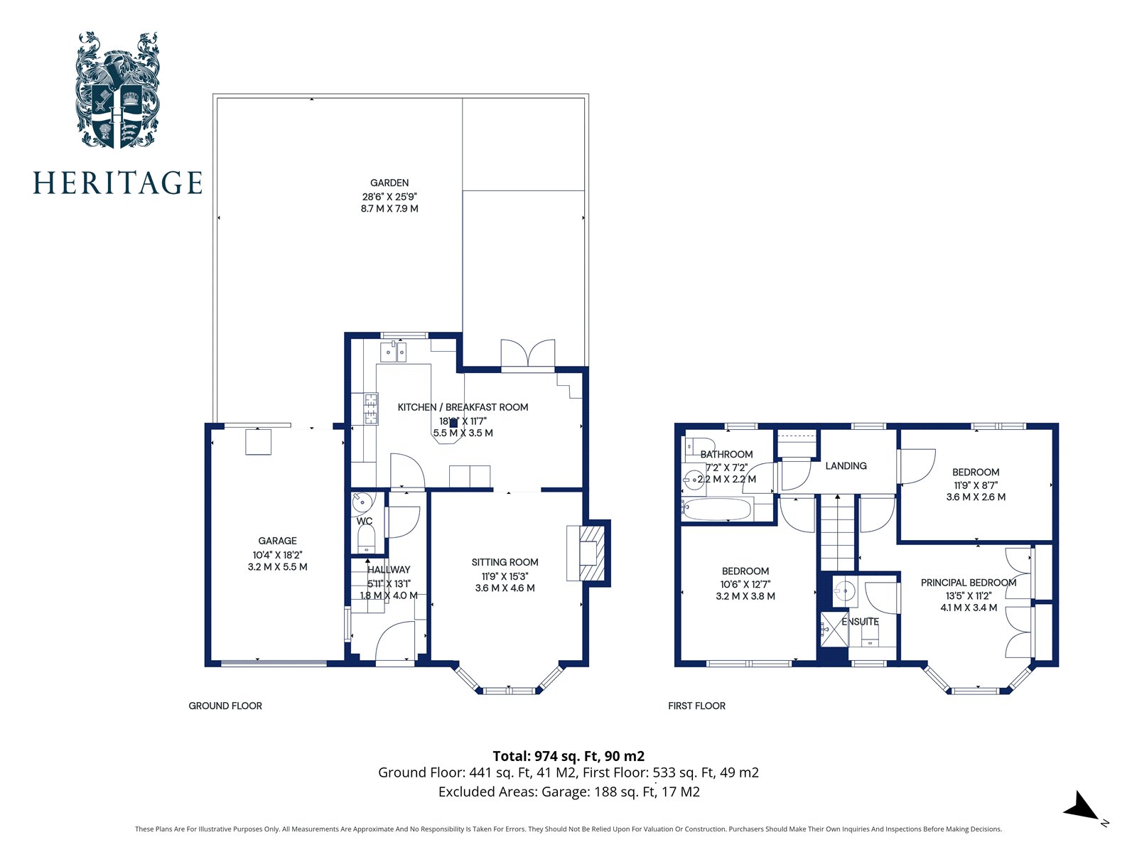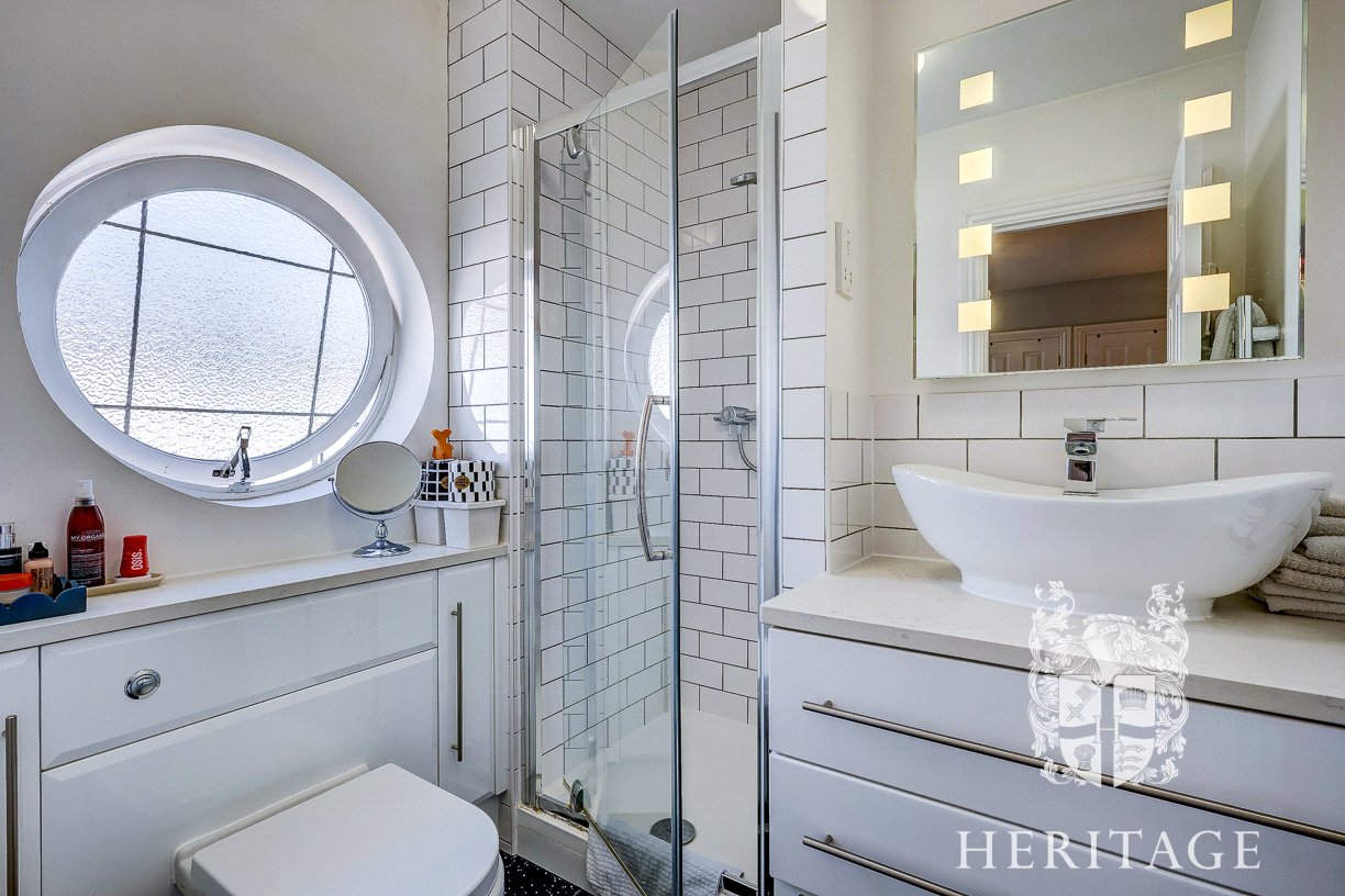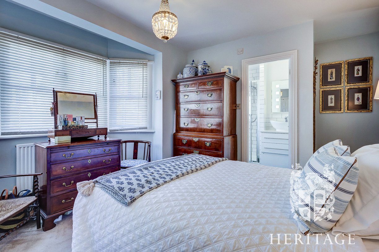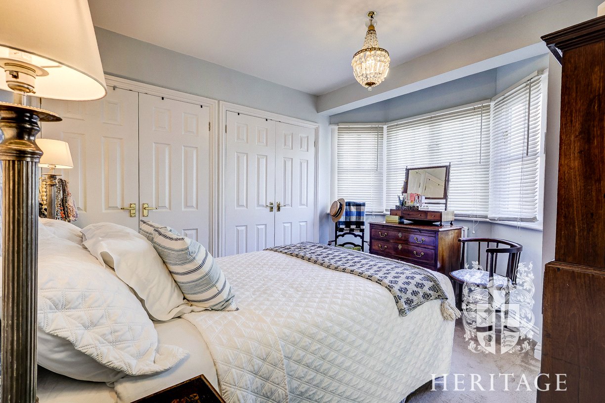 To the first floor there are three well-proportioned bedrooms. The primary bedroom benefits from twin fitted wardrobes, an en-suite shower room, and an identical bay window to that found in the sitting room, creating a pleasing symmetry to the front elevation. The two further bedrooms are both good sizes and are served by a modern family bathroom. Both the ensuite bathroom and family bathroom have ample storage which is an added benefit.