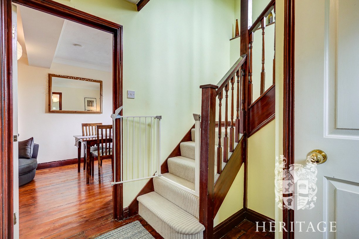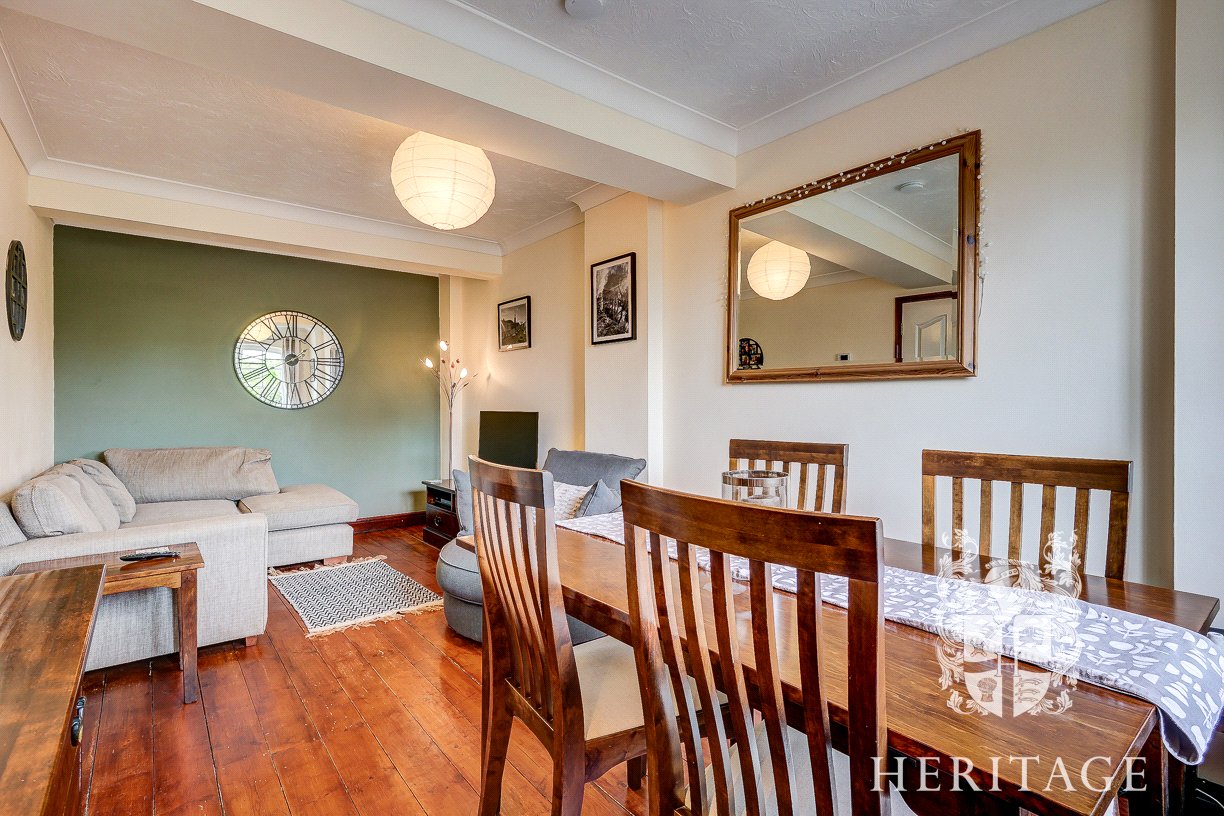 You enter the property into a central hallway, with stairs rising to the upper floors and access through to the kitchen and main living space. The kitchen is neatly arranged with a range of fitted units and provides a practical workspace, whilst the sitting room to the rear is a generous and comfortable area with space for both relaxing and dining, enjoying a pleasant outlook over the garden.