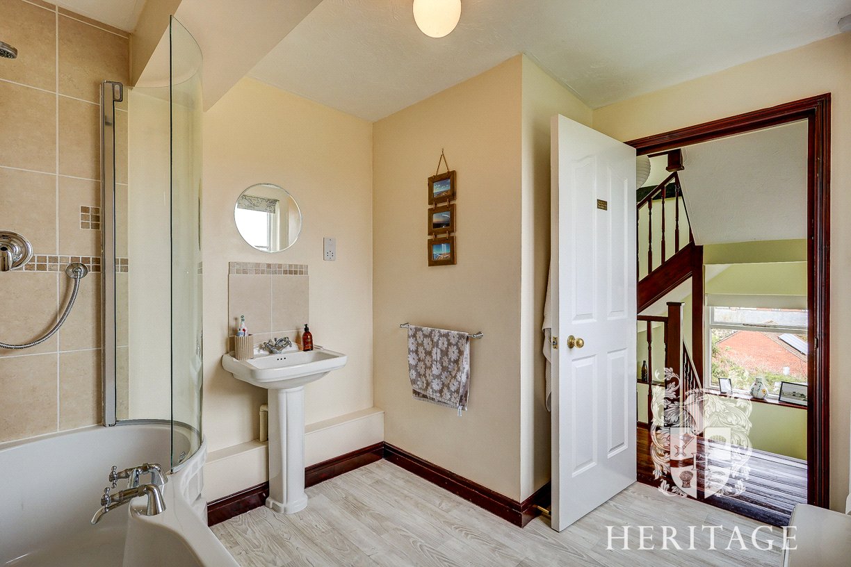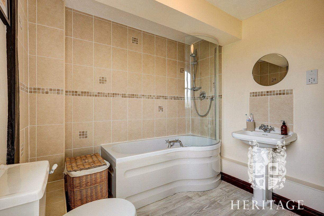On the first floor, there is a particularly spacious principal bedroom along with a well-appointed family bathroom, fitted with a bath, WC and wash basin.