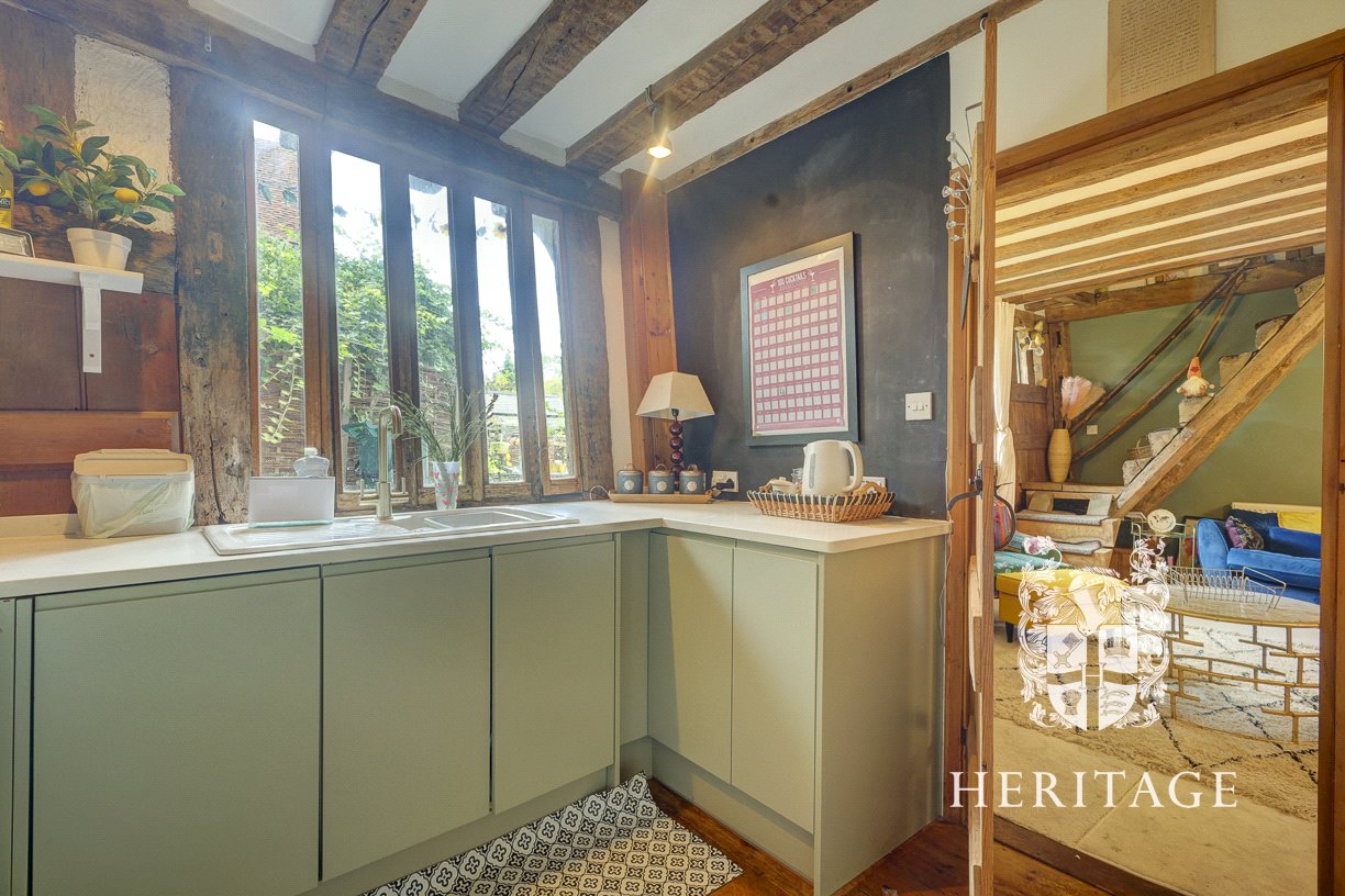 This charming two-bedroom property forms part of an exceptionally historic Grade II* listed building, with origins dating back over 600 years. Lovingly restored in recent years, the home blends period character with thoughtful craftsmanship, including bespoke oak-framed windows and a striking oak staircase with oversized exposed beams—features more commonly seen in grander period residences.