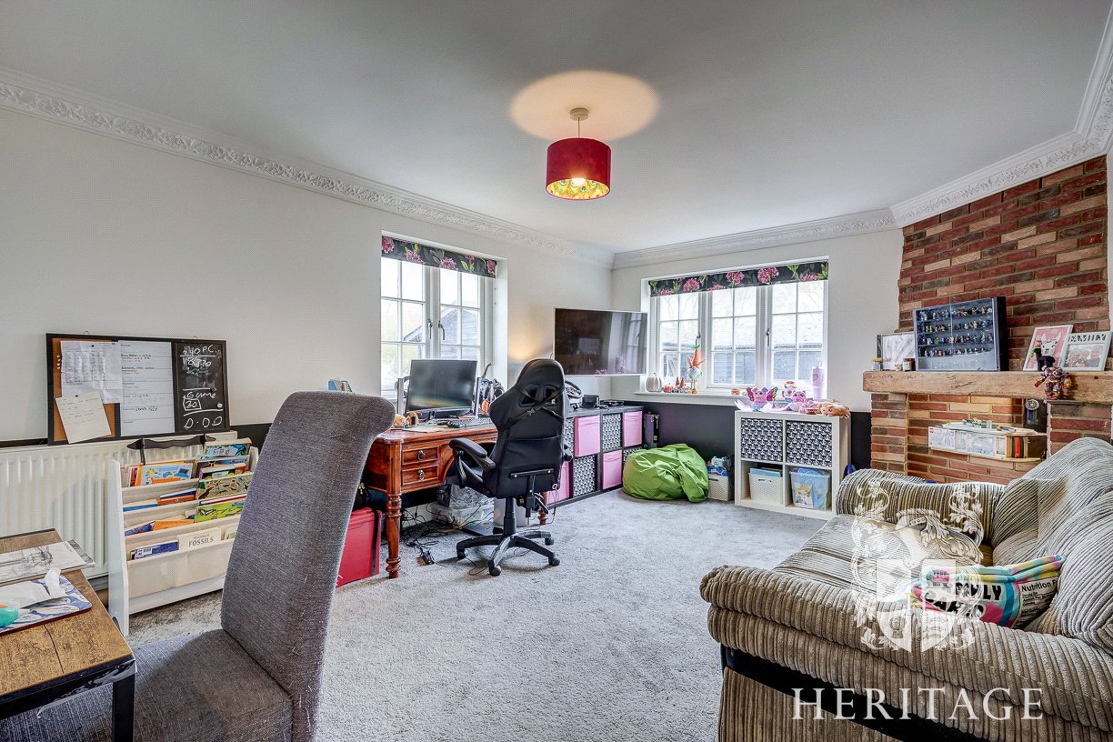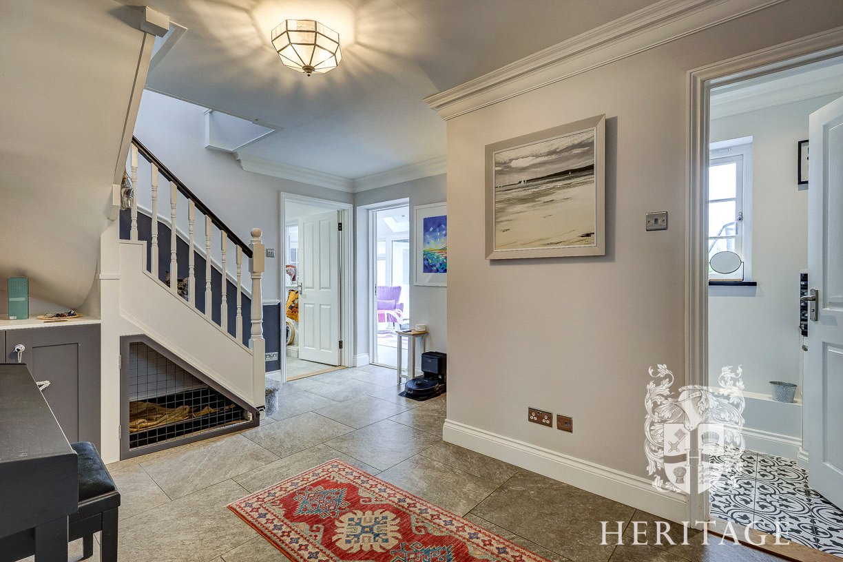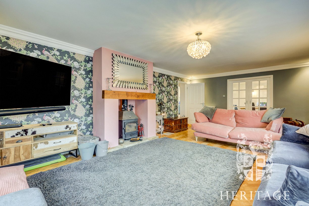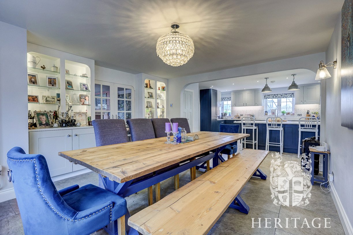 Moving through, the heart of the home is the kitchen/breakfast room, a well-designed space ideal for modern family life. There is ample room for dining, with a central island and a natural flow into the adjoining dining area, creating a sociable environment for both day-to-day use and entertaining.