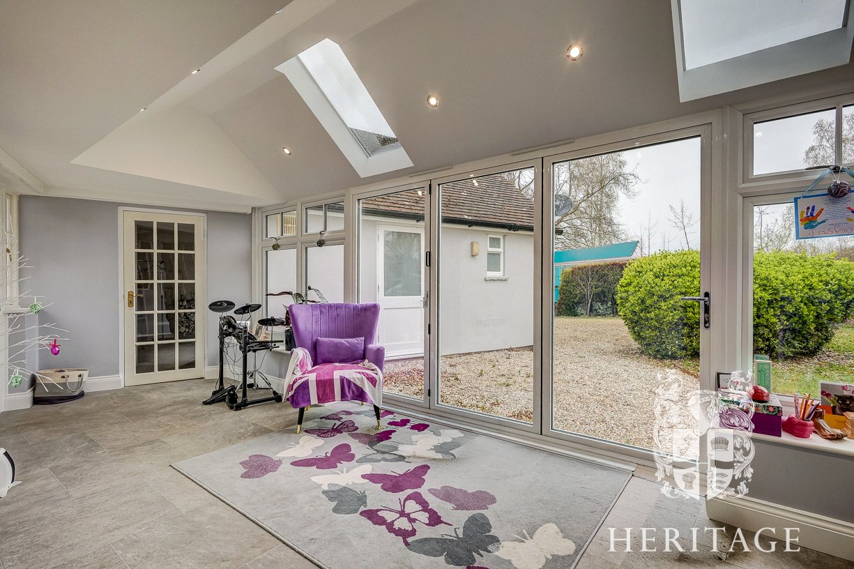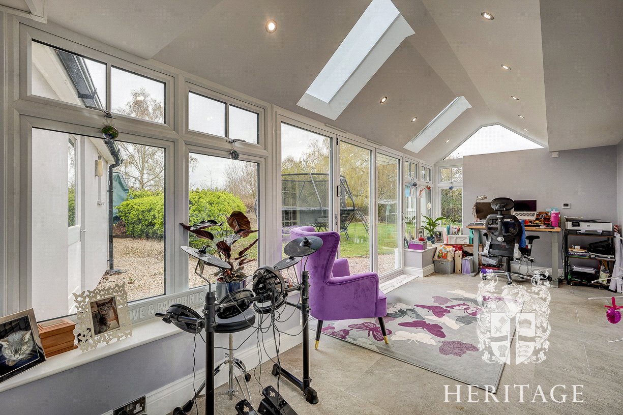 To the rear, a sun room offers an additional reception space, enjoying a pleasant outlook and providing a quieter retreat. Beyond this, there is a separate bedroom suite with its own en-suite wet room, ideal for guests, dependent relatives, or those seeking ground floor accommodation.