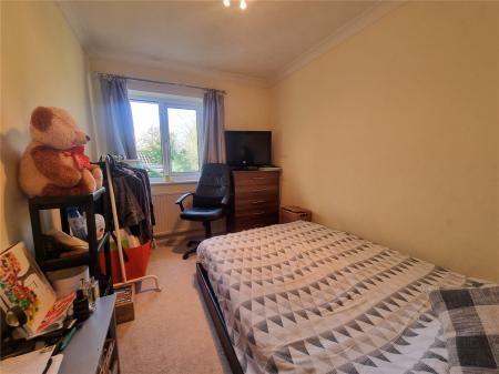 The main bedroom is a generous double, complete with built-in wardrobes and bedside units, and benefits from a rear-facing window with views over the garden. The second bedroom is also a good size, featuring a front-facing window. The third bedroom, situated to the rear, offers flexibility as either a guest bedroom or additional study space.