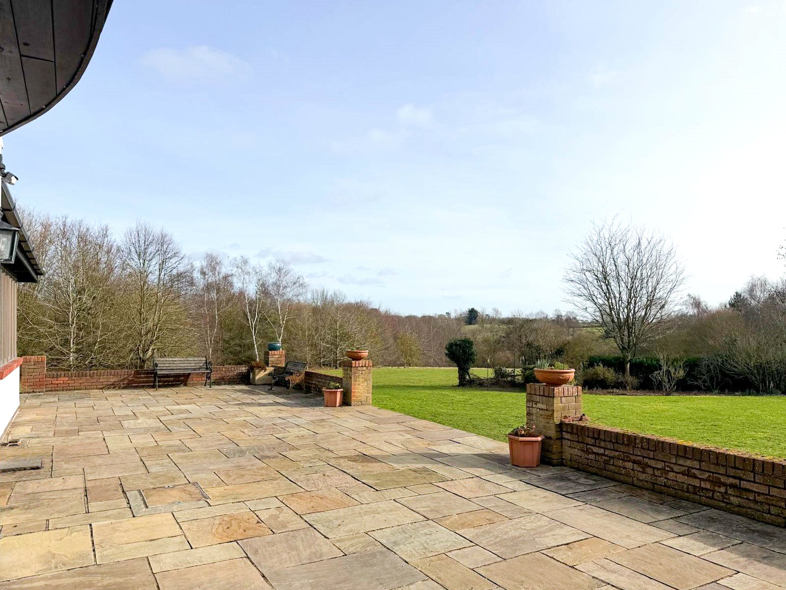 The patio area serves as an idyllic outdoor entertainment space, perfect for dining al fresco and enjoying the serene atmosphere of the countryside.