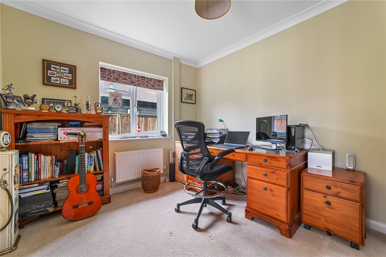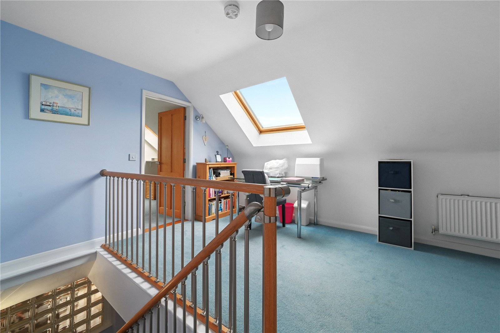 The study provides a quiet and well-balanced room, ideal for home working or reading. Glazed double doors connect through to the sitting room, creating flexibility between open-plan living and a more defined, private workspace when required.