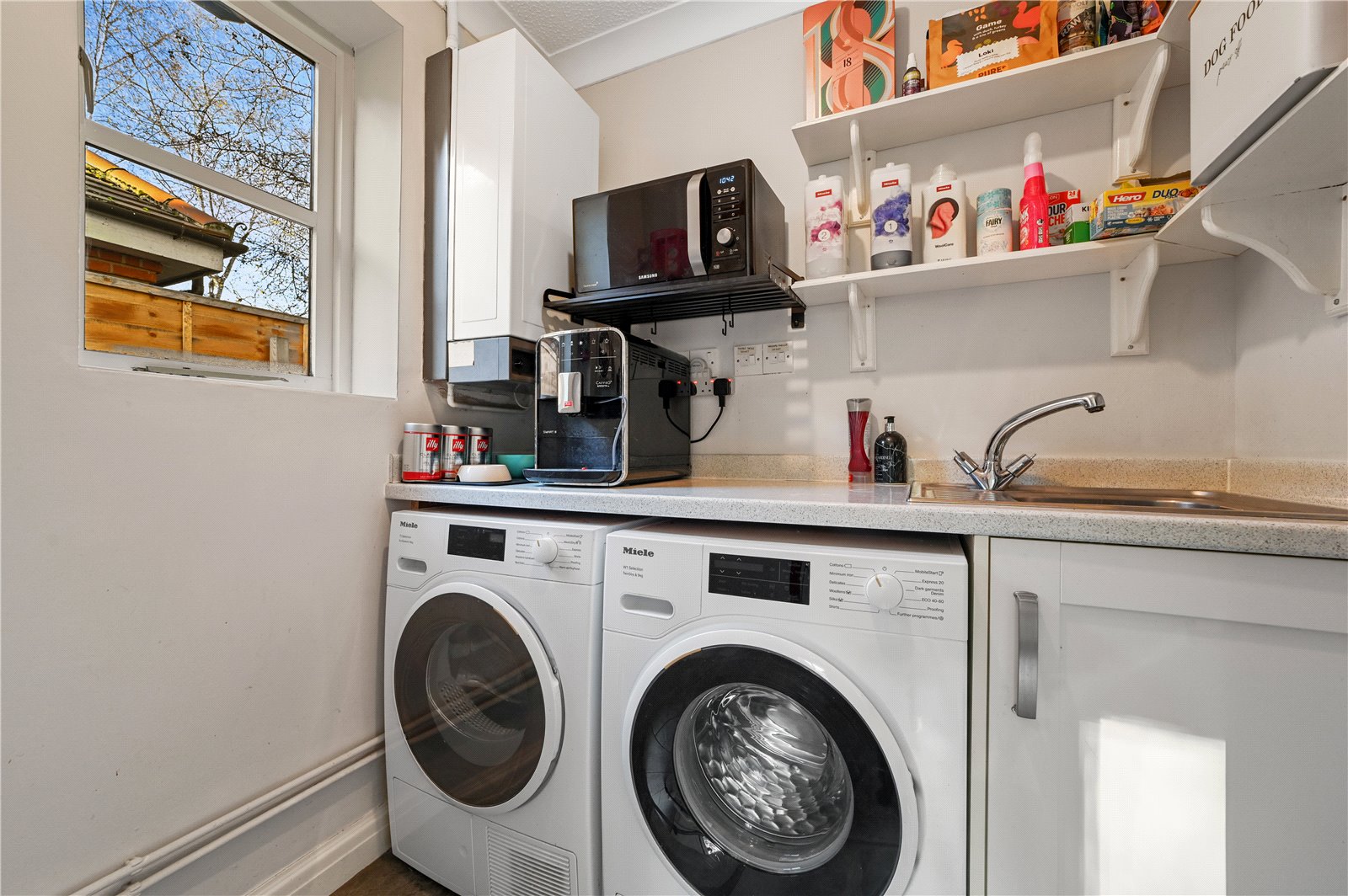 The ground floor is arranged to support both everyday living and more formal occasions. The entrance hall sets the tone for the home, leading into a bright kitchen with generous work surfaces, ample storage, and views over the garden. A separate utility room provides further workspace and appliance capacity, along with direct access to the outside.