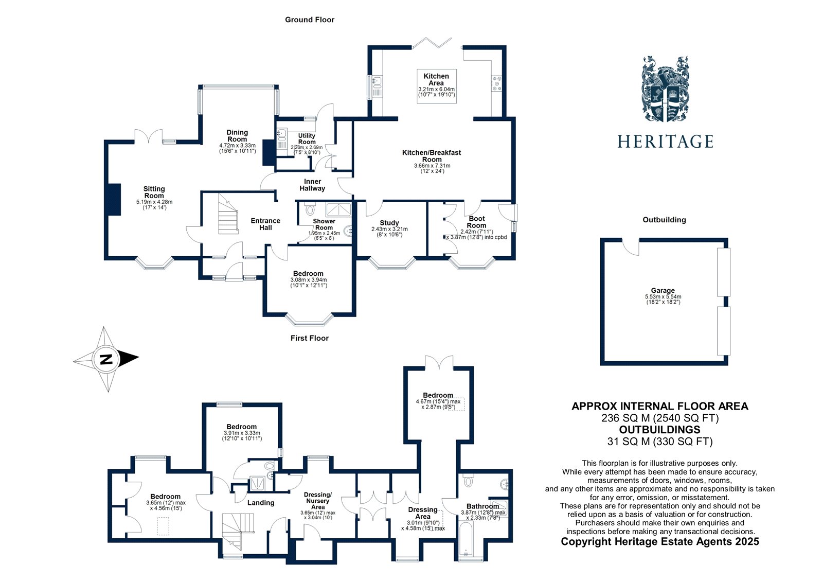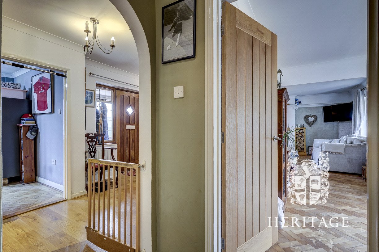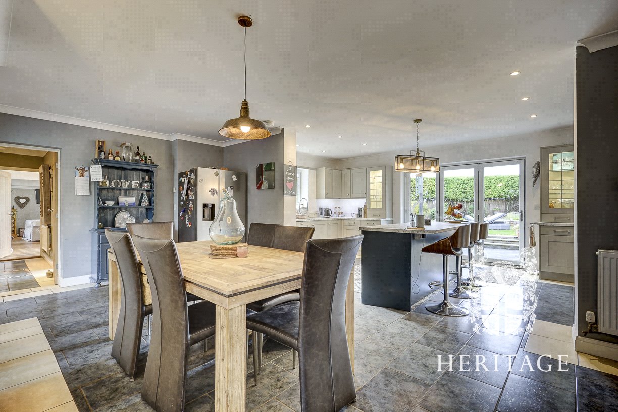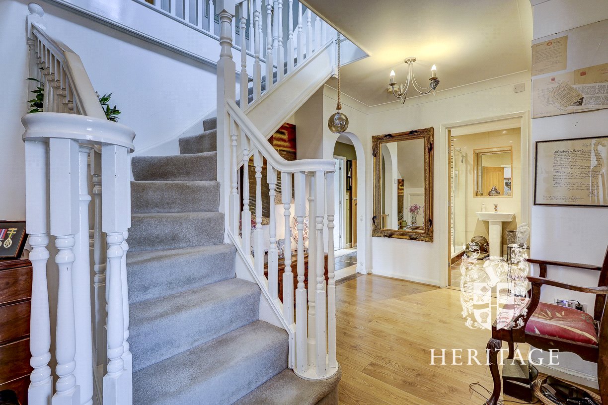 The snug connects to an inner hallway that provides access to the dining room, study, and boot room. This room also includes access to a utility room with space for a washing machine and tumble dryer and large airing cupboard, larder cupboard and door to the garden.