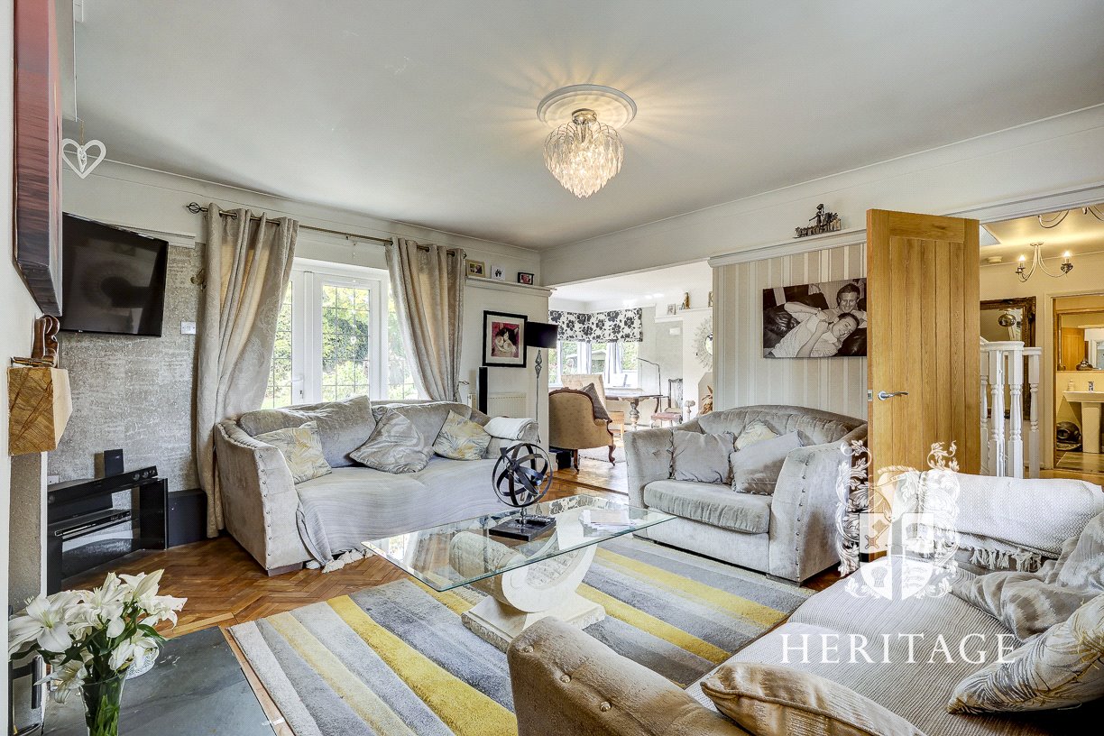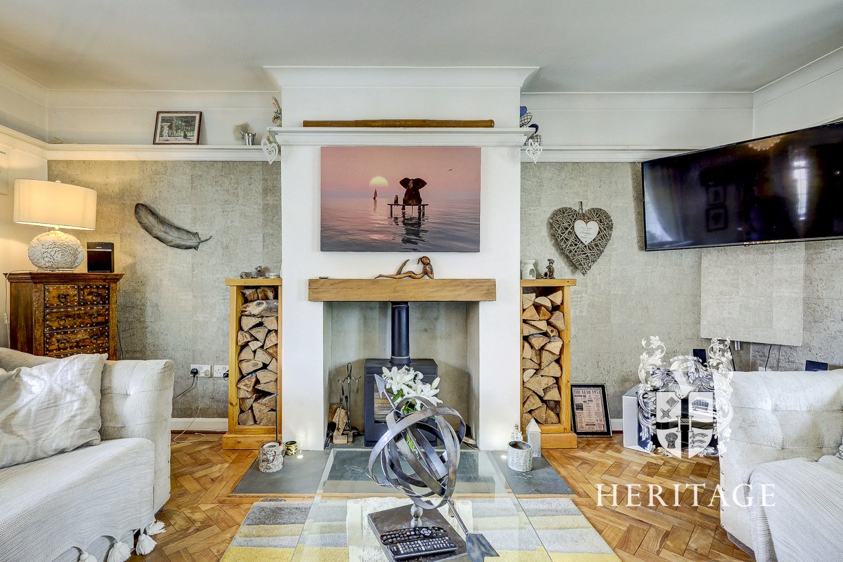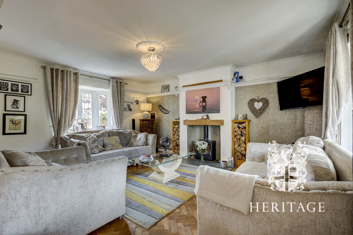 On the ground floor, there is a generous sitting room featuring a fireplace with a wood burner and double doors opening onto the rear garden. This room flows through to a cosy snug with large bay windows pleasant views over the garden.