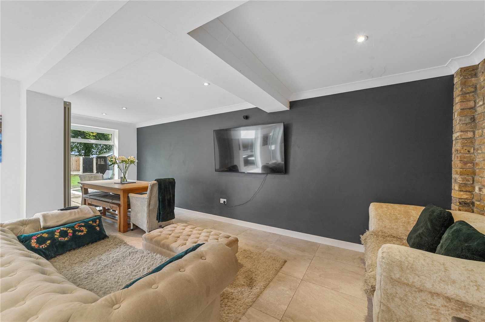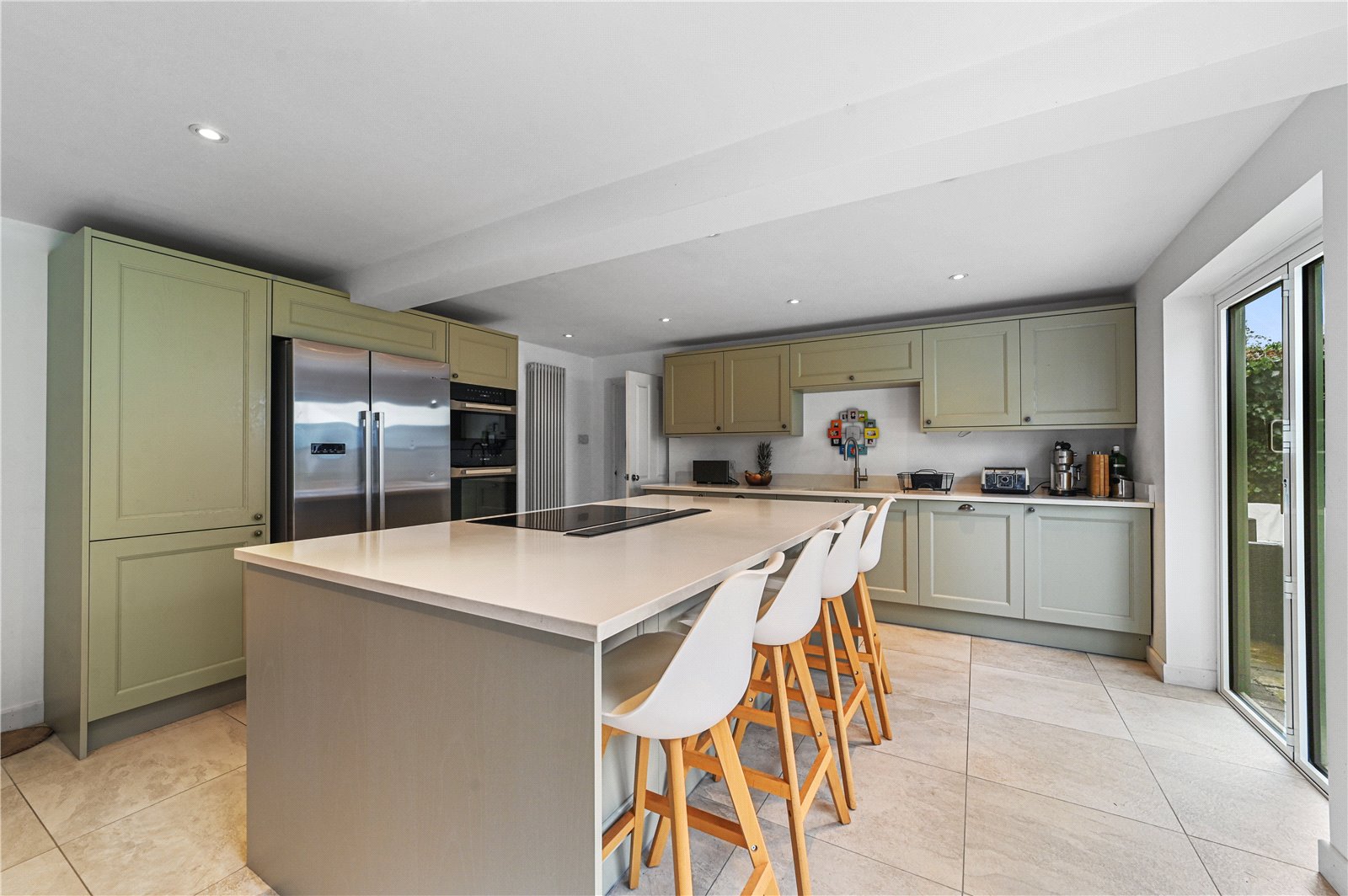 A generously proportioned kitchen / family room is located at the rear of the property and is the heart of this home. The kitchen is presented in warm, Shaker style, complemented by quartz worktops, incorporating a bevelled drainer. The kitchen is open to a family / dining area, ideal for relaxing days and casual mealtimes. Bi-fold doors open onto the garden, bringing the outdoors in and creating a wonderful sense of space. This open-plan layout ensures that the kitchen, dining, and living areas remain connected, making it an ideal spot for both daily living and social occasions.
