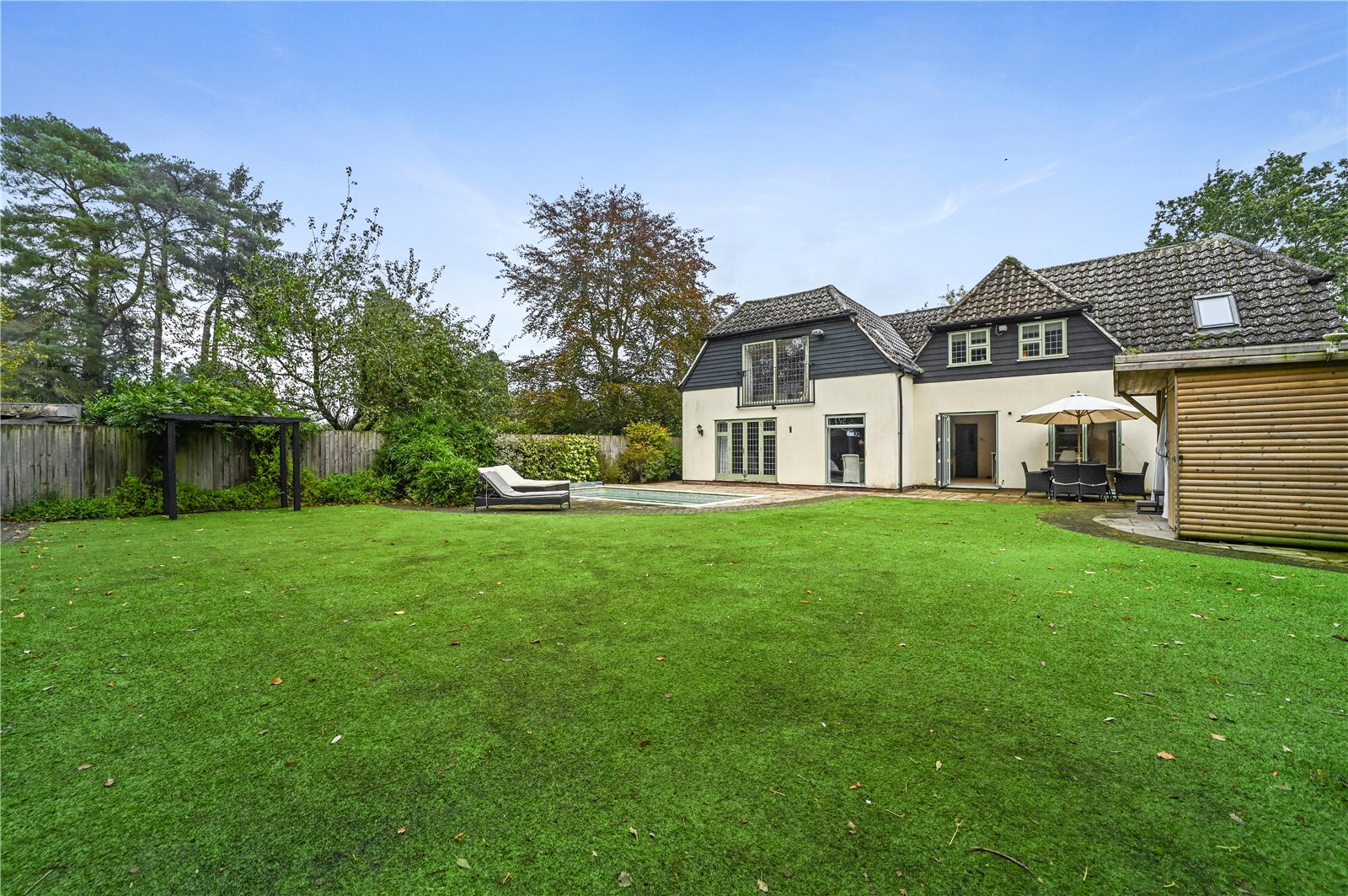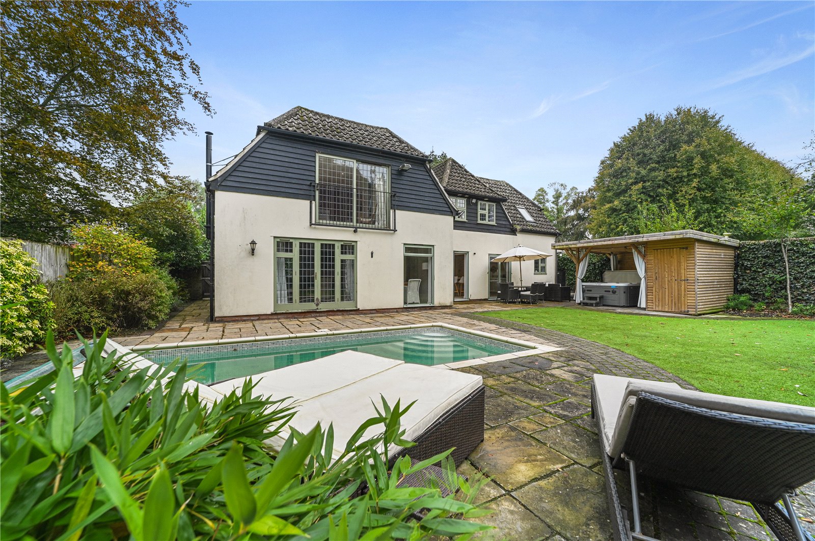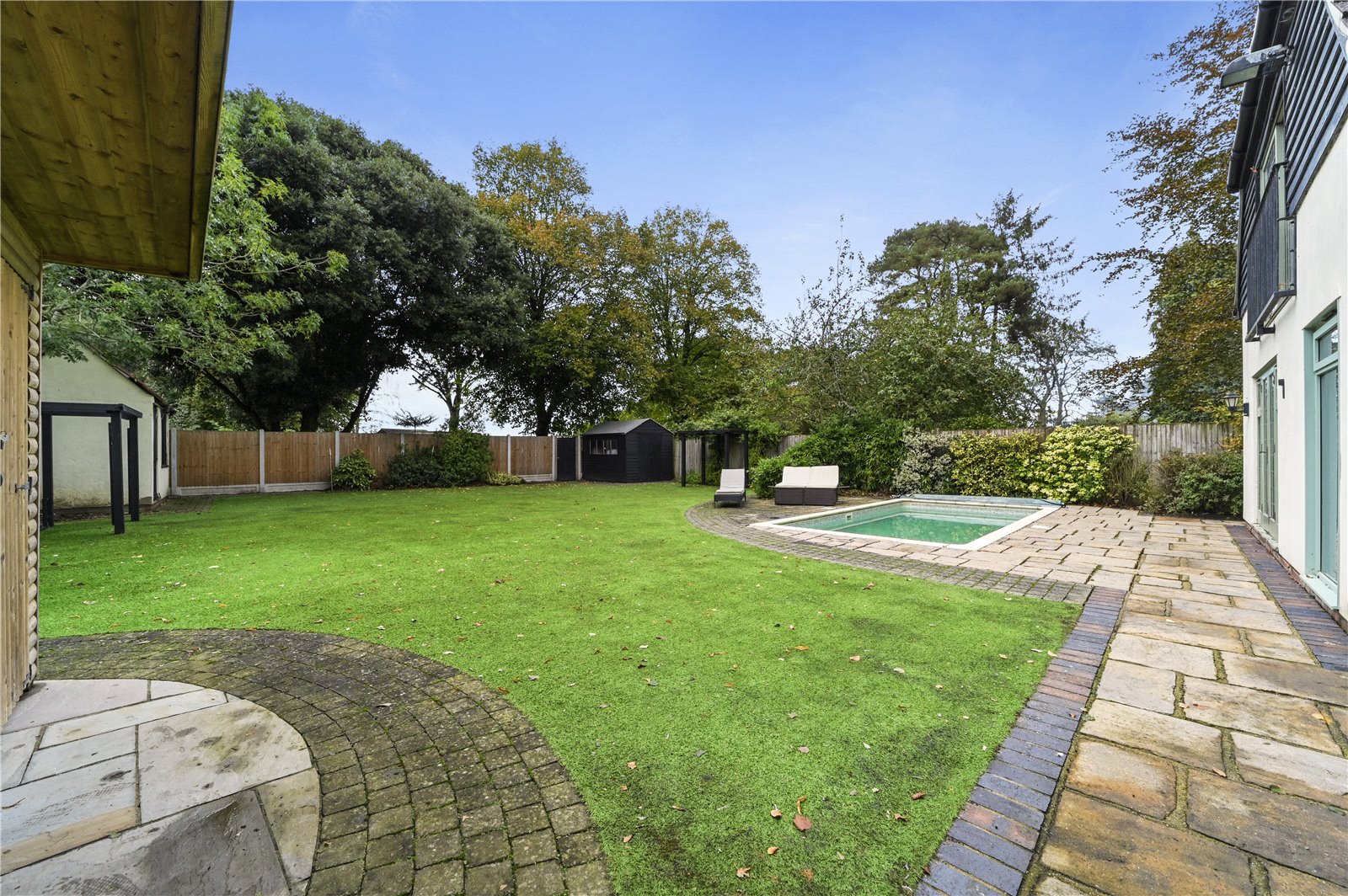 The exterior of the property is designed to offer both relaxation and outdoor entertainment. The garden itself reveals a blend of lawn and paved areas, seamlessly leading to a generous patio, ideal for outdoor gatherings. At the heart of the garden is a heated swimming pool - complete with swim jets, set amidst landscaped surroundings.
