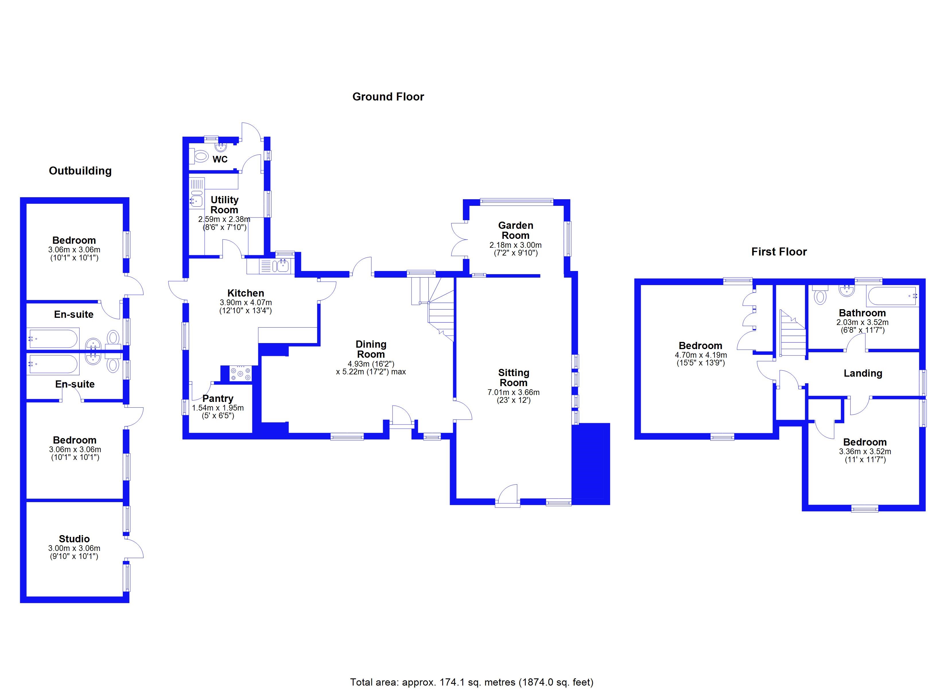 - Two Additional En-Suite Bedrooms in Outbuilding