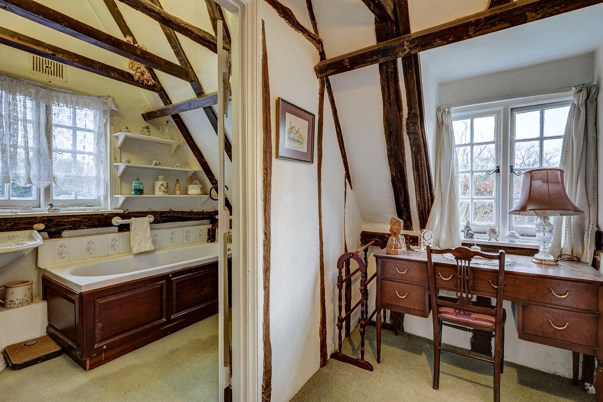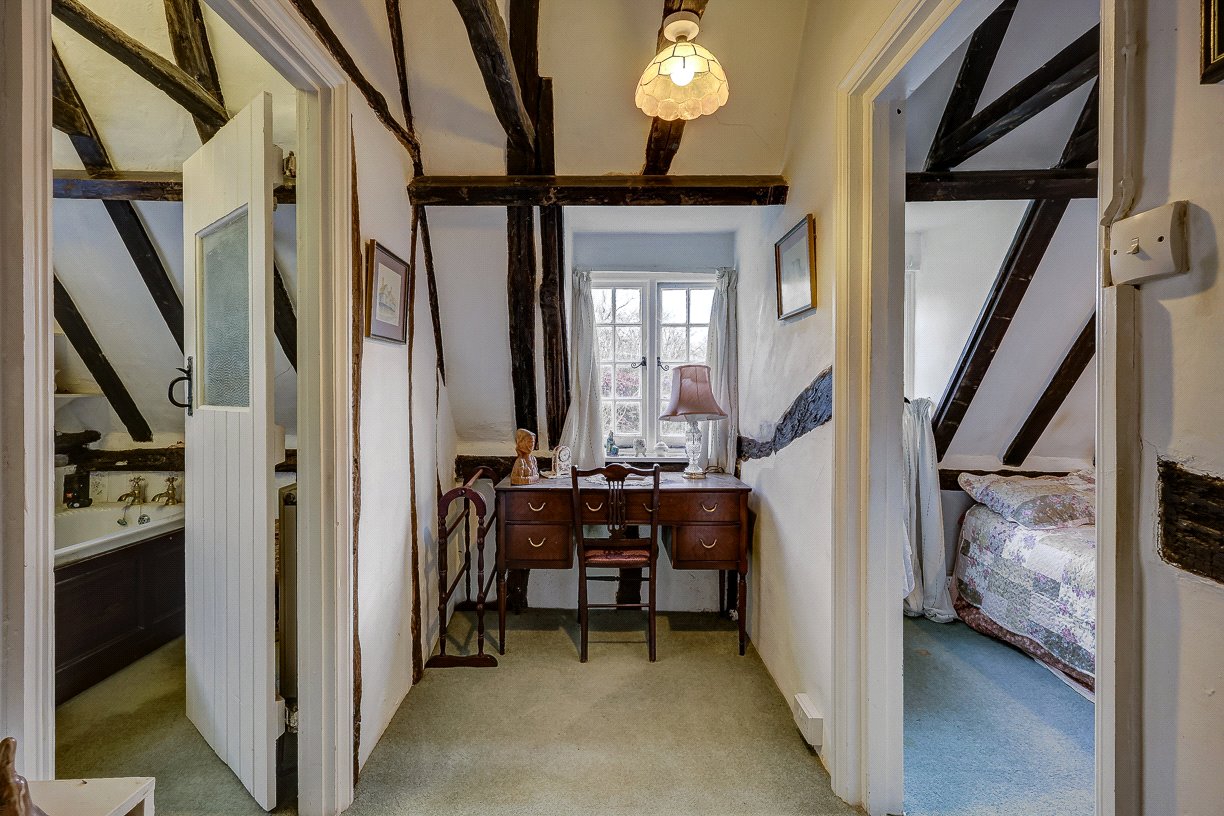 To the first floor, a spacious landing provides access to two double bedrooms and a family bathroom. Please note that there is some restricted headroom in the first-floor rooms, adding to the property's period charm.