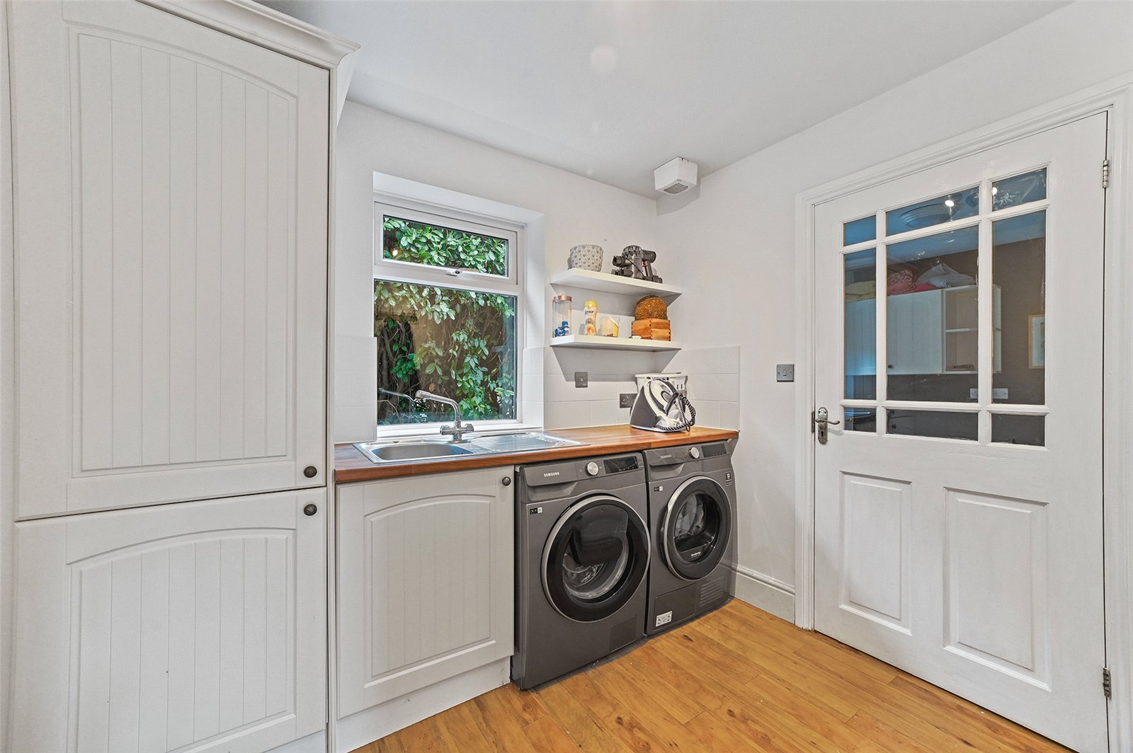 The garden to the rear is enclosed and designed for ease of maintenance, with a paved terrace extending directly from the kitchen and family area. This provides an ideal space for outdoor dining and entertaining, with a level lawn beyond offering room for children to play or for keen gardeners to personalise further.