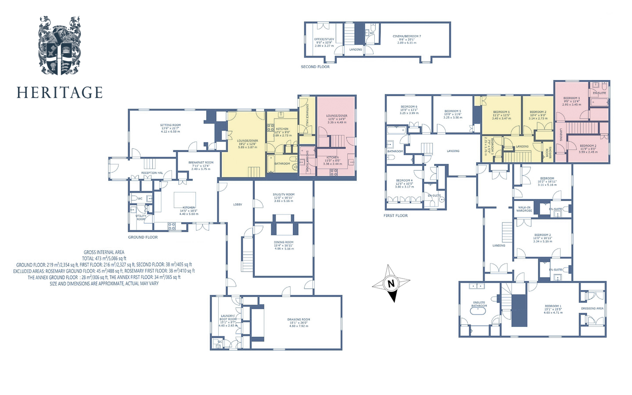 - Total Accommodation: 6500 sq ft across three dwellings plus two-story oak barn.
