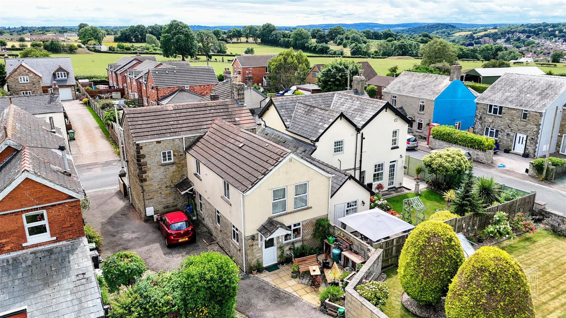 Outside - To the front of the property gated access leads into the front garden with a low level stone wall and pathway leading to the front door.