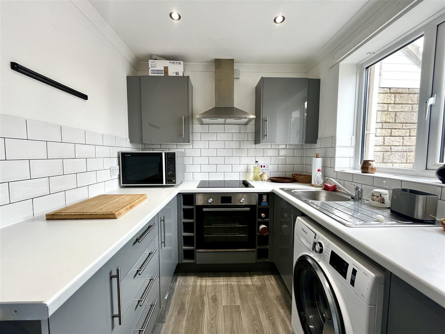 Kitchen - 2.67m x 2.11m (8'9 x 6'11) - A range of base, drawer and wall mounted units, built in oven and four ring electric hob, extractor fan, space for washing machine, space for fridge/freezer, single bowl single drainer sink unit with mixer tap over, inset ceiling spotlights, front aspect upvc double glazed window.