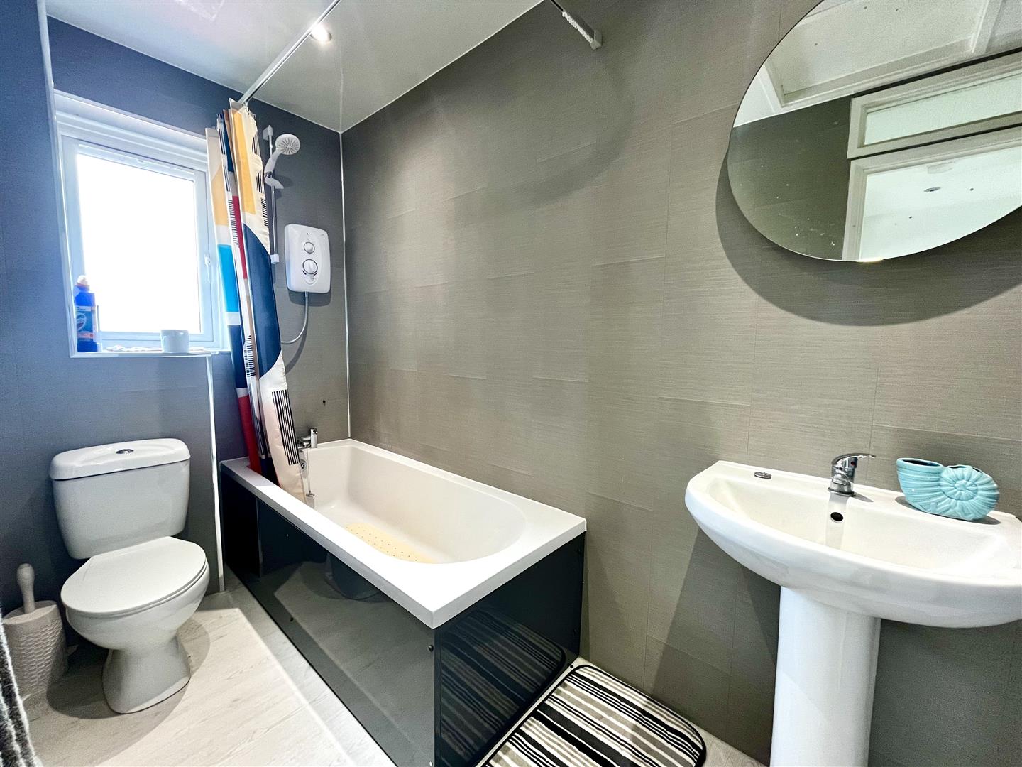 Bathroom - 3.07m x 1.42m (10'1 x 4'8) - Panelled bath with electric shower over, heated towel rail, sink with tap over, inset ceiling spotlights, access to loft space, built in light up mirror, front aspect upvc double glazed frosted window.