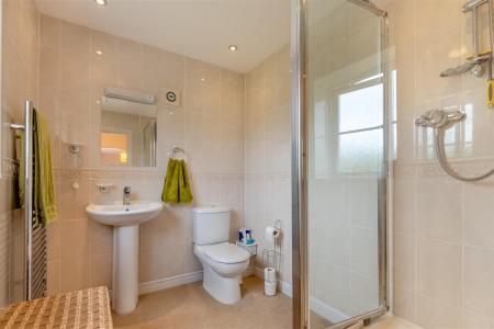 Ensuite - W.C, wash hand basin, shower cubicle, heated towel rail, tiled walls, rear aspect double glazed UPVC frosted window.