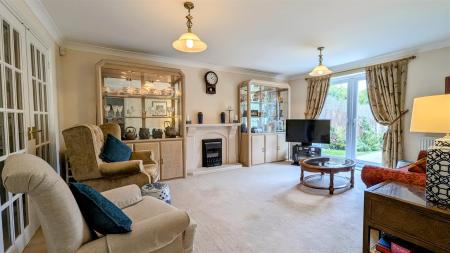 Lounge - 3.91m x 5.21m (12'10 x 17'01) - Stone gas fireplace, two radiators, power points, coving, rear aspect double glazed UPVC French doors leading out to the rear garden.