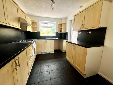 Kitchen - 2.69m x 3.15m (8'10 x 10'4) - Rear and side aspect double glazed UPVC window, range of wall, drawer and base mounted units, one and a half bowl stainless steel single drainer unit with mixer tap over, gas four ring hob, built in oven, built in extractor fan, space for fridge freezer, space for washing machine.
