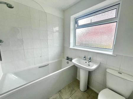 Bathroom - 2.13m x 1.68m (7'0 x 5'6) - Rear aspect double glazed UPVC frosted window, tiled flooring, panelled bath with bath taps over, shower attachment above and a tiled splashback, radiator, close coupled W.C.