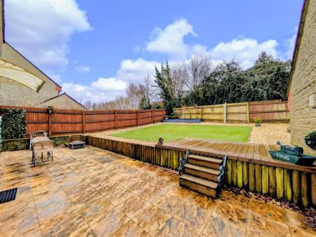 Rear Gardens - Paved patio and seating area, steps to decking which leads to an all weather Astroturf lawn area, raised flower borders, outside lights, outside power points, outside tap, all enclosed by fencing surround with gates to both sides of the property.