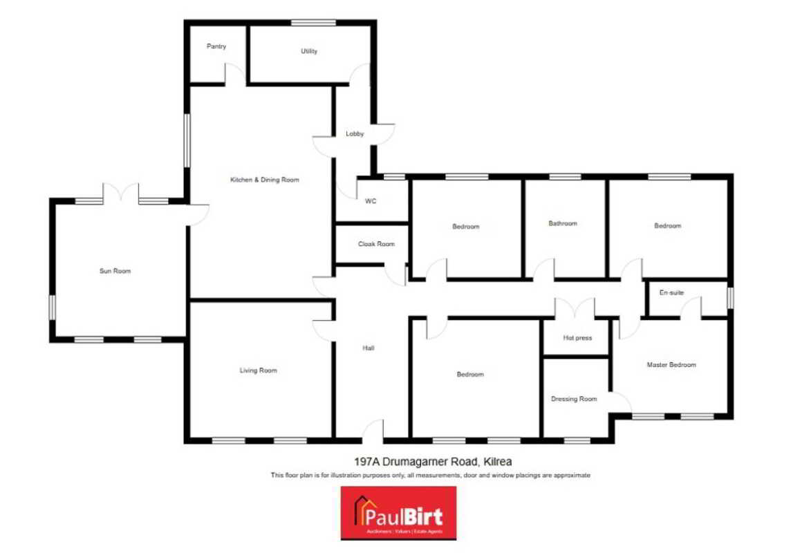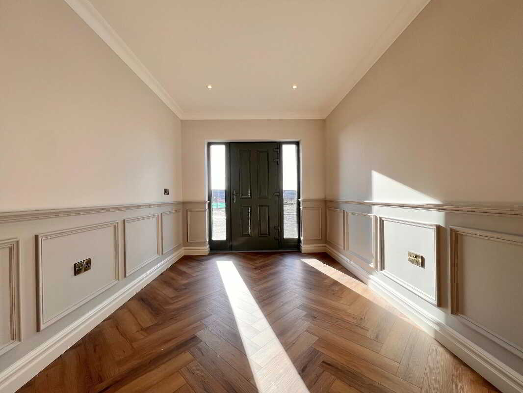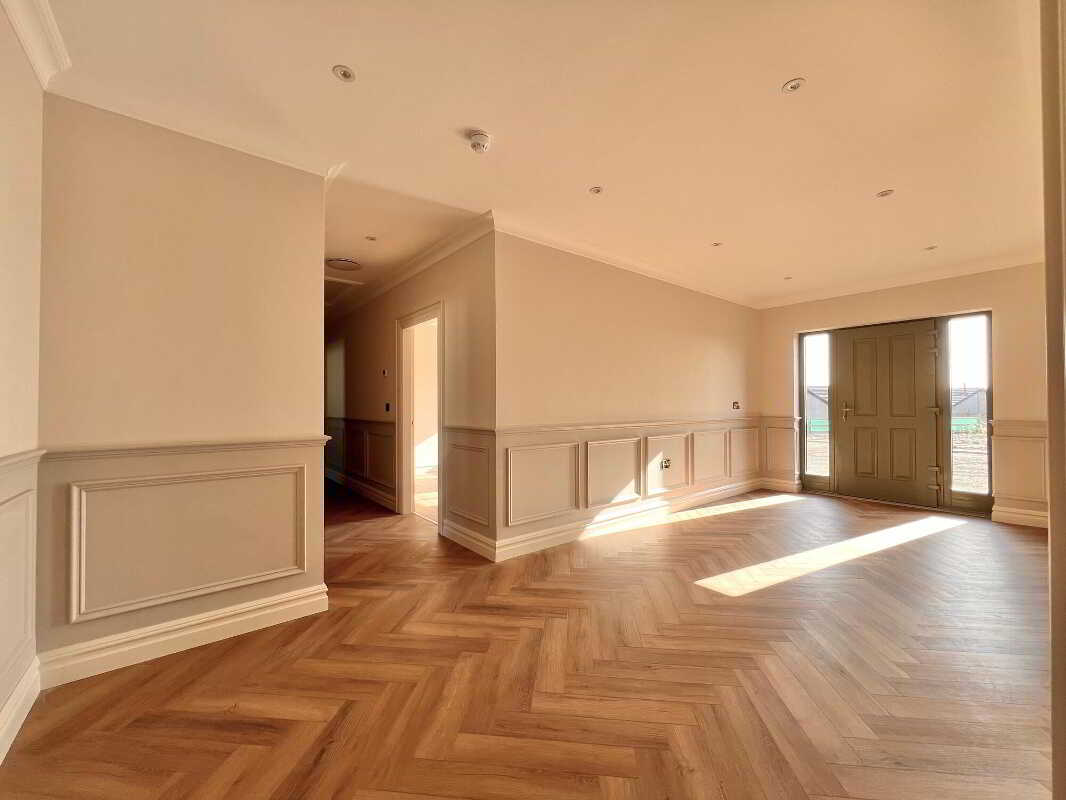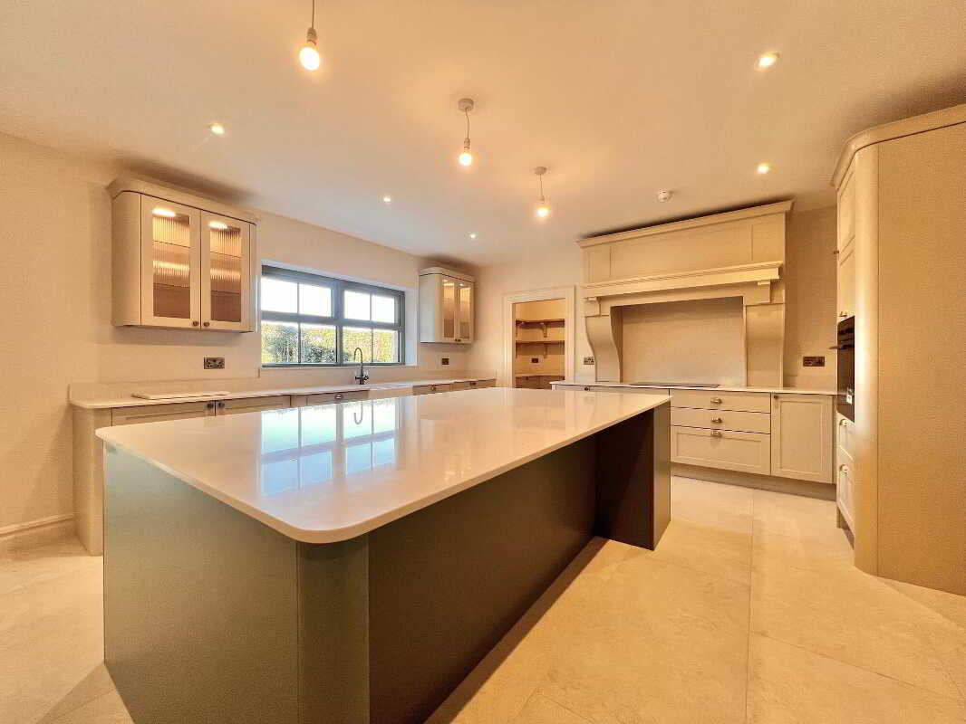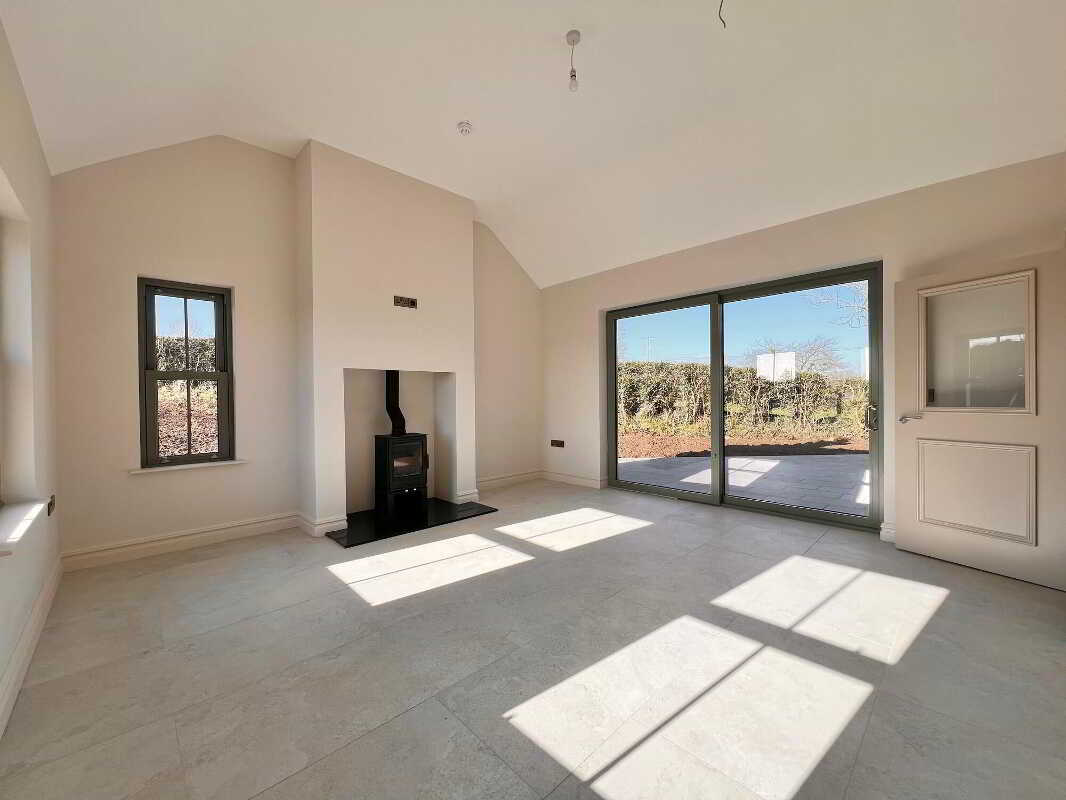Entrance HallWith feature herringbone style laminate wood floor, wall panelling with feature lighting, cornicing, wall lights, recessed lights, storage cupboard.Living RoomWith feature herringbone style laminate wood floor, recessed lights, eye level tv point.Open Plan Kitchen & DiningAn excellent range of modern fitted units, Belfast sink and a large contrasting centre island/breakfast bar with consentino worktops, splashback and upstands. Integrated appliances include, a boiling water tap, AEG five-ring induction hob & electric oven, AEG dishwasher, integrated fridge and integrated freezer. Floor-to-ceiling pantry style units offer generous storage with feature lighting and electric. Recessed lights, tiled floor, dining area with eye level tv point.PantryAn excellent range range of modern fitted units and shelving, floor fully tiled.SunroomWith feature vaulted ceiling, tiled floor, wood burning stove, eye level tv point, large sliding doors to patio paved area.Utility RoomWith eye & low level units, stainless steel sink and drainer unit, plumbed for washing machine, space for tumble dryer, recessed lights, floor fully tiled.WcContemporary two piece white suite comprising of wc, wall hung vanity and basin, illuminated mirror, recessed lights, floor fully tiled.Master Bedroom (En-Suite & Dressing Room)With laminate wood floor & dressing room.