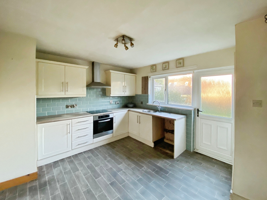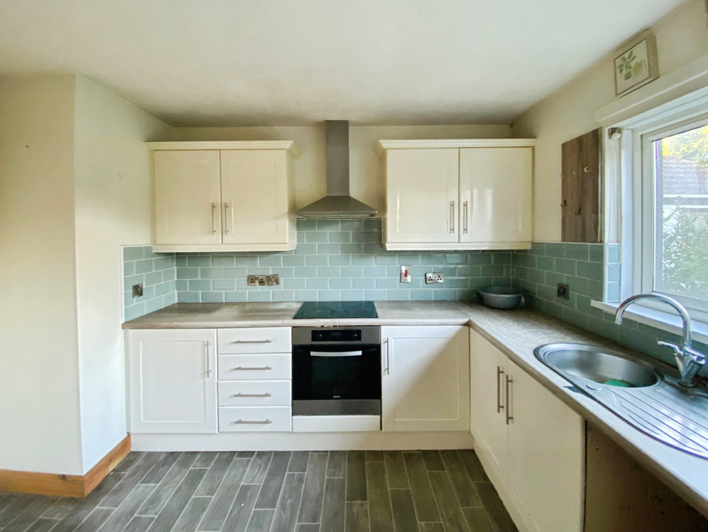 With range of eye and low level units, stainless steel sink unit with mixer tap, Integrated hob and oven with extractor fan, tiling around worktop, space for dishwasher. Measurements to widest points.