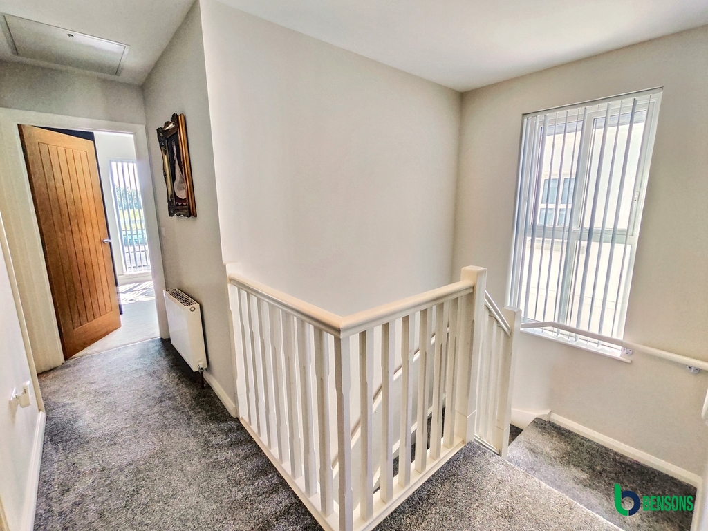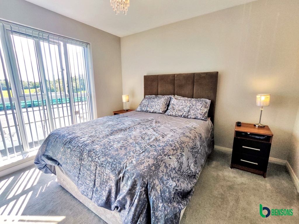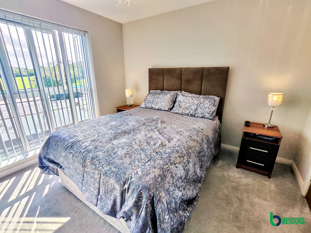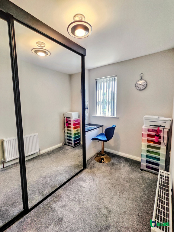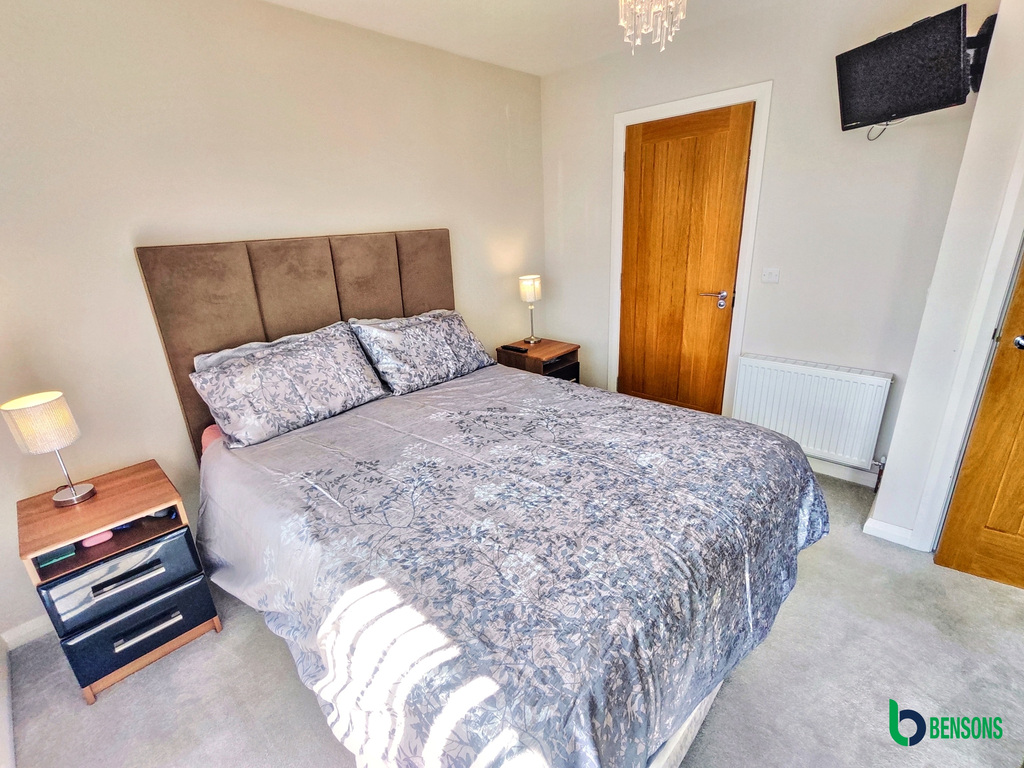 With built-in mirrored sliderobe. En-suite comprising of WC, Fully tiled walk-in mains shower cubicle, floating wash hand basin, chrome heated towel rail, extractor fan, fully tiled floor and walls.