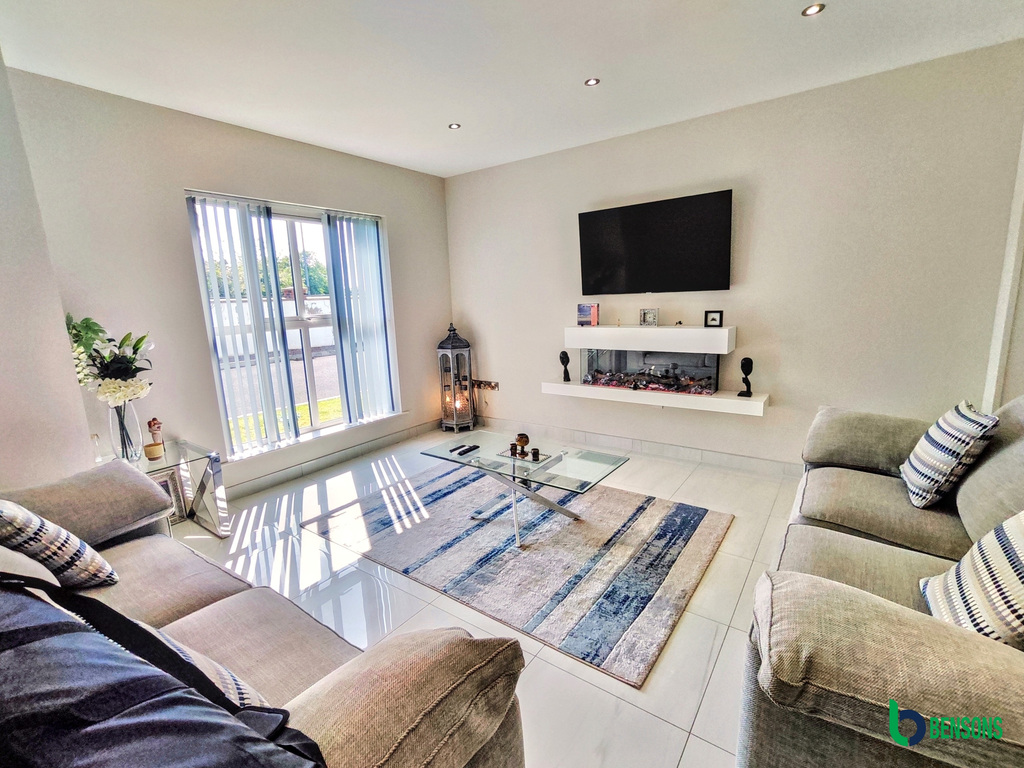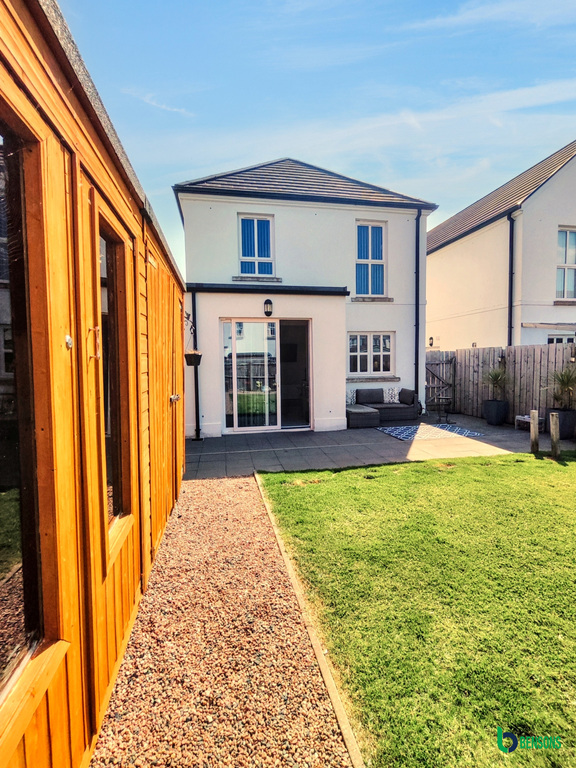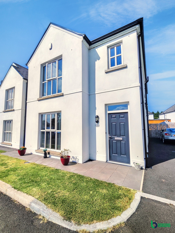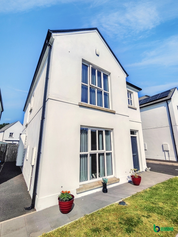 This stunning 4-bedroom detached home offers modern living at its finest. The interior is bright spacious and thoughtfully laid out, providing an ideal family setting. A bespoke kitchen, finished to the highest of standards, is the heart of the home, featuring premium integrated appliances and stylish finishes. Private garden to rear complete with patio and decking areas with ample space for multiple sheds or potentially summer house. The front of the property is low maintenance, with neat lawn and tarmac driveway to side. The home is also conveniently located a short distances away from Coleraine town, train stop and approx. 3 miles from Portrush..