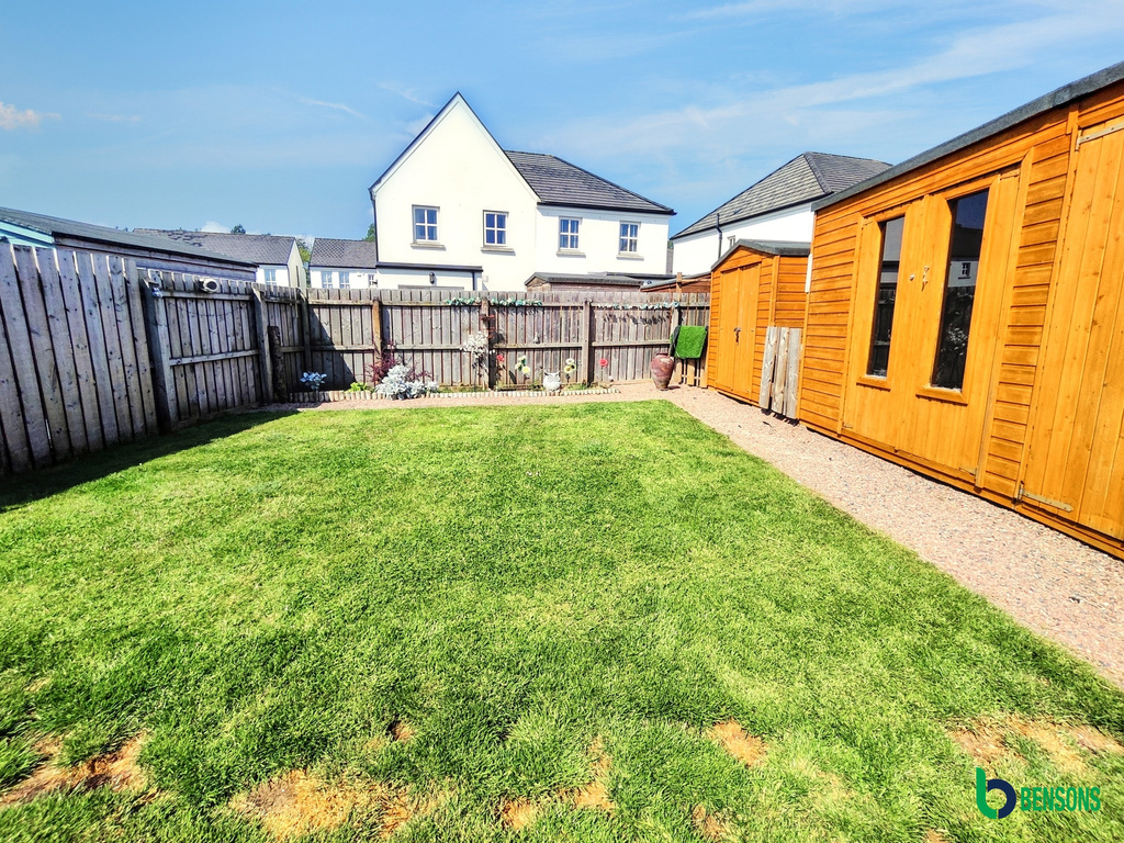 Lawn area to front with tarmac driveway to side. Private garden to rear laid in lawn with patio and decked area, gravel pathways, enclosed flower beds and space for multiple sheds or summer house. All fully enclosed by fencing.