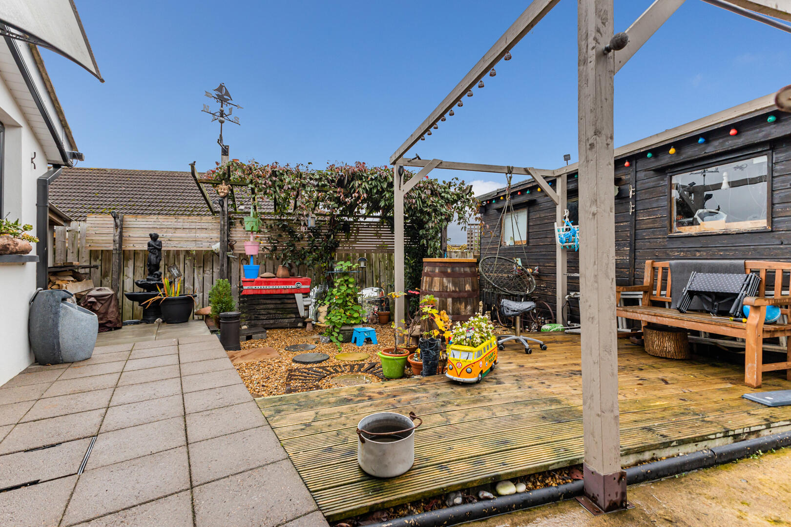 Outside - To the front a fully enclosed garden laid in artificial grass, path that leads to the front door and decorative pebbles. To the side a large tarmac driveway providing ample off streetcar parking with gate access to the rear garden. uPVC guttering, fascia boards and downspouts. To the rear a fully enclosed garden with paved patio area, decked patio area, pergola, BBQ area and pebbled courtyard perfect for outdoor entertaining. Two excellent sized sheds providing ample storage facilities with light and power so could be utilised as a home office or crafts area. Outside water and outside light.