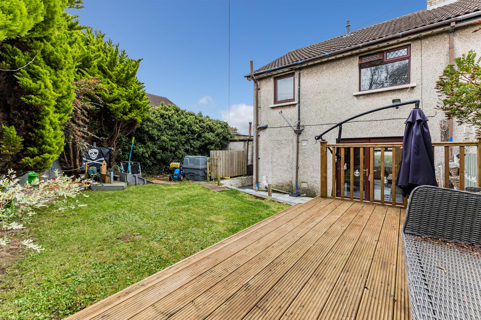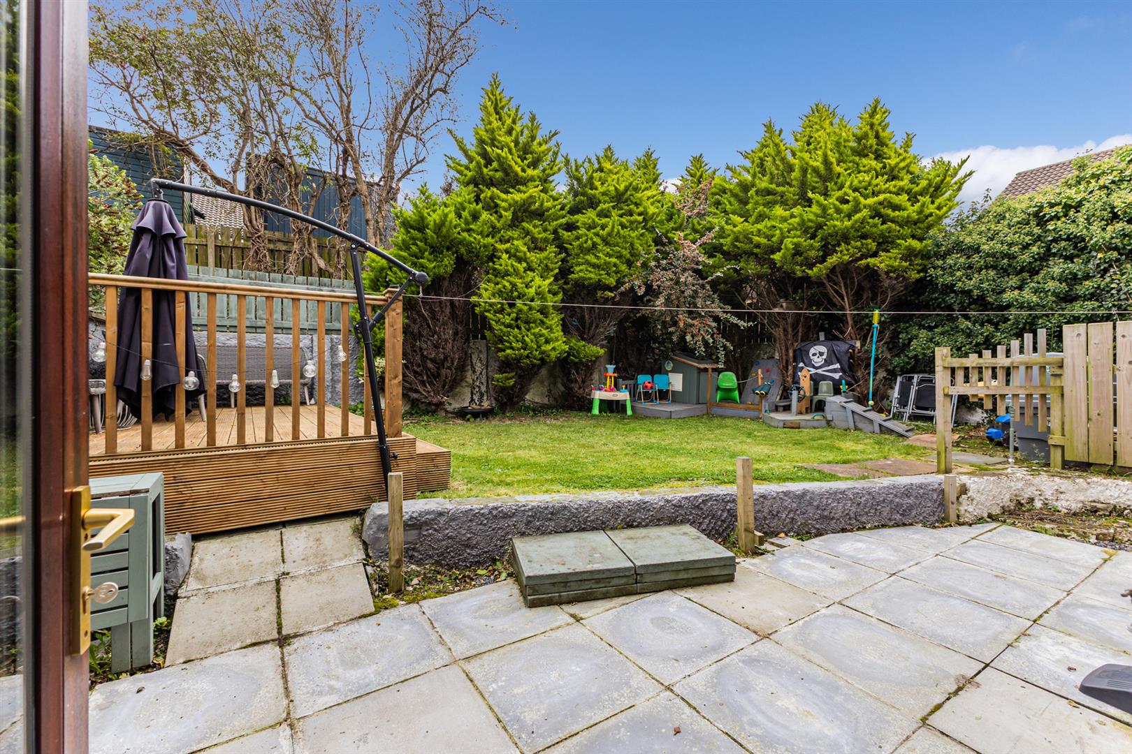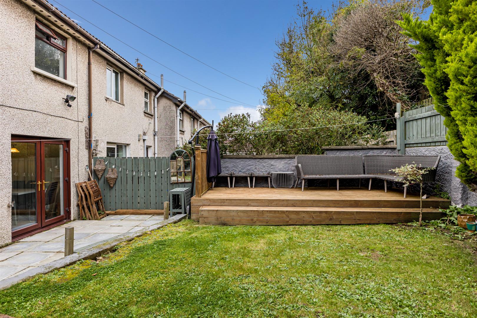 Excellent Sized Enclosed Rear Garden with Paved and Decked Areas Ideal for Entertaining, Young Children and pets Alike