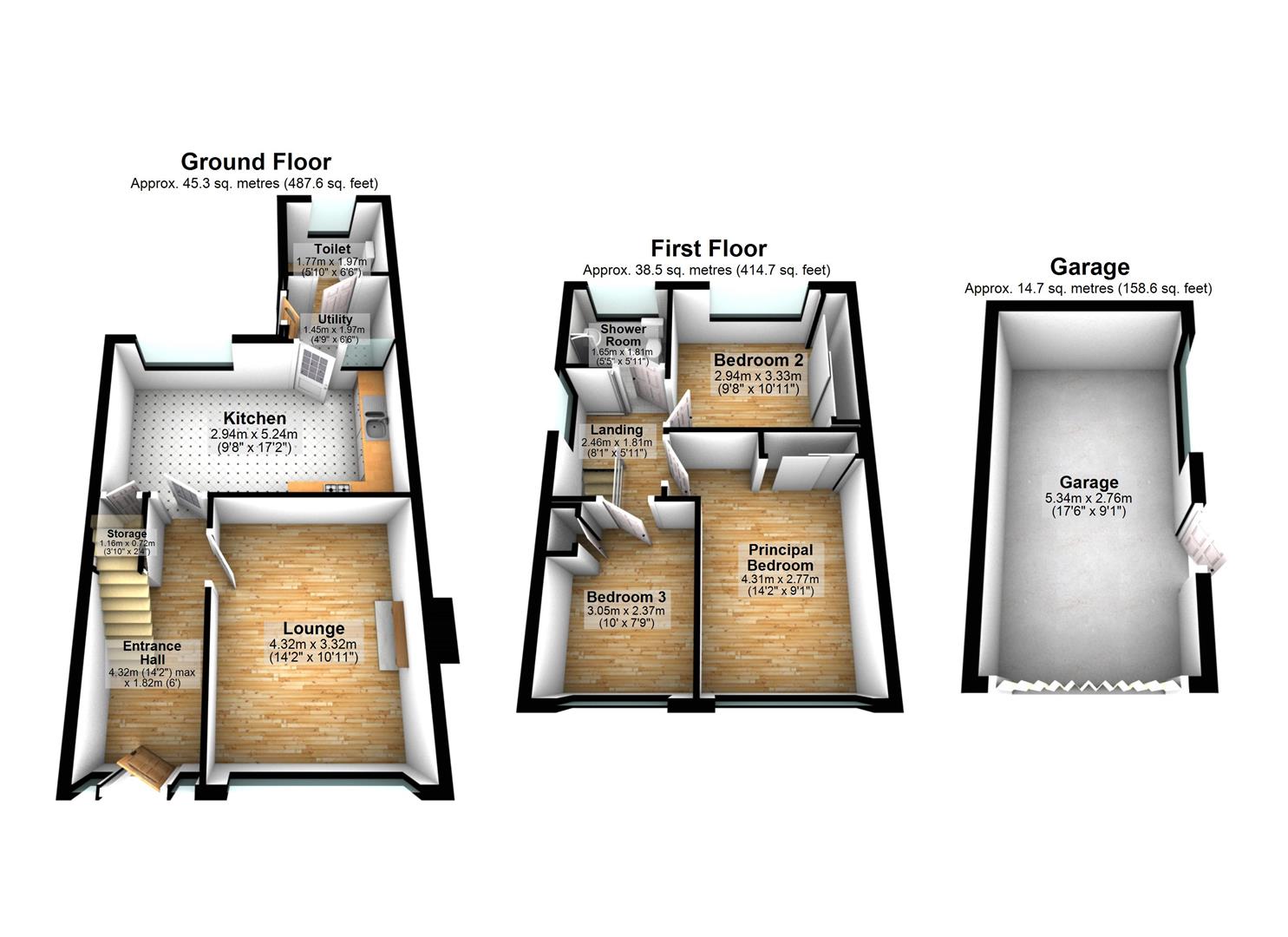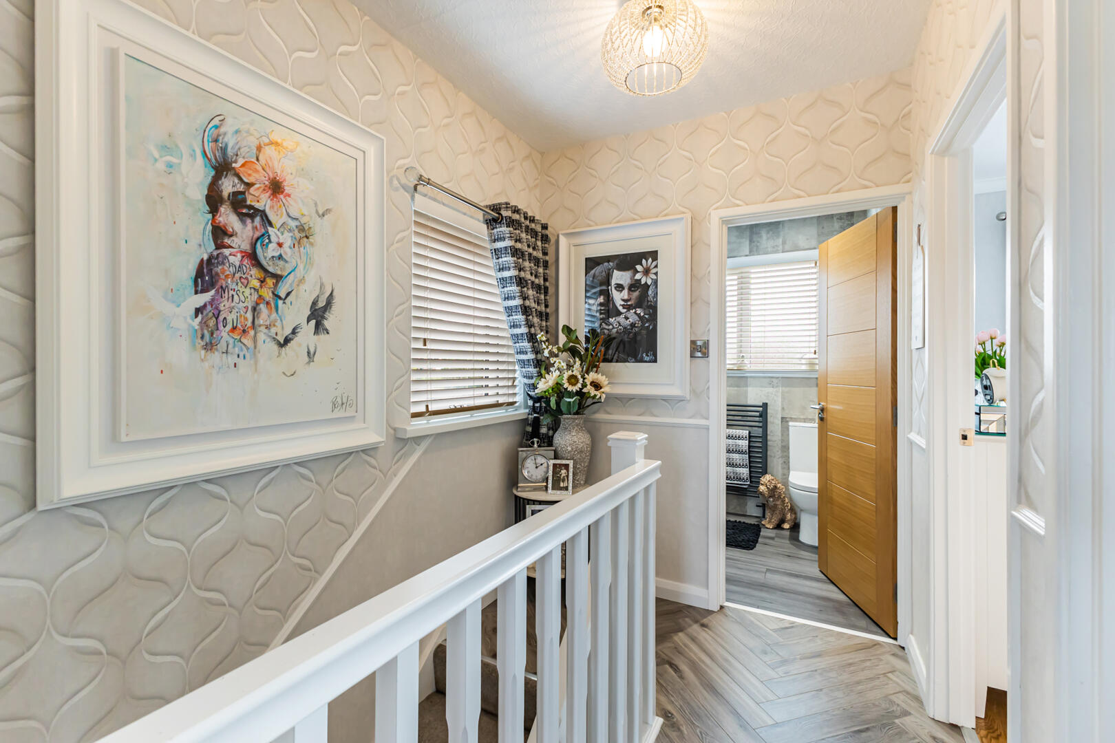 The accommodation comprises a welcoming family lounge with feature fireplace, open plan kitchen / dining area with a bespoke fully fitted kitchen, integrated appliances and ample dining space - perfect for both family life and entertaining. A convenient downstair WC completes the ground floor. Upstairs there are three well-proportioned bedrooms and a modern family shower room.