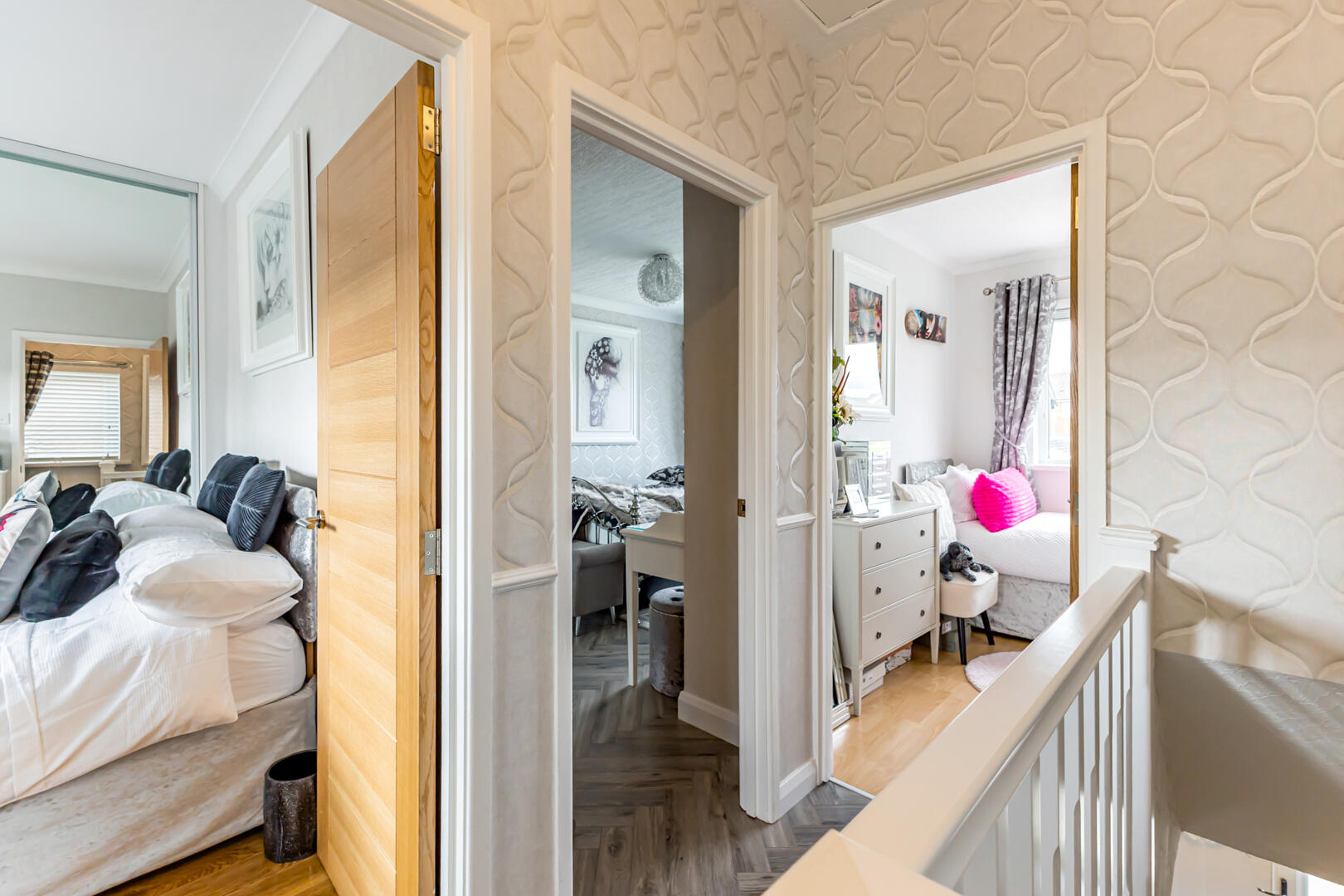 Bedroom Three - 3.05m x 2.36m (10' x 7'9") - Outlook to front, laminate wood flooring, built in storage cupboard
