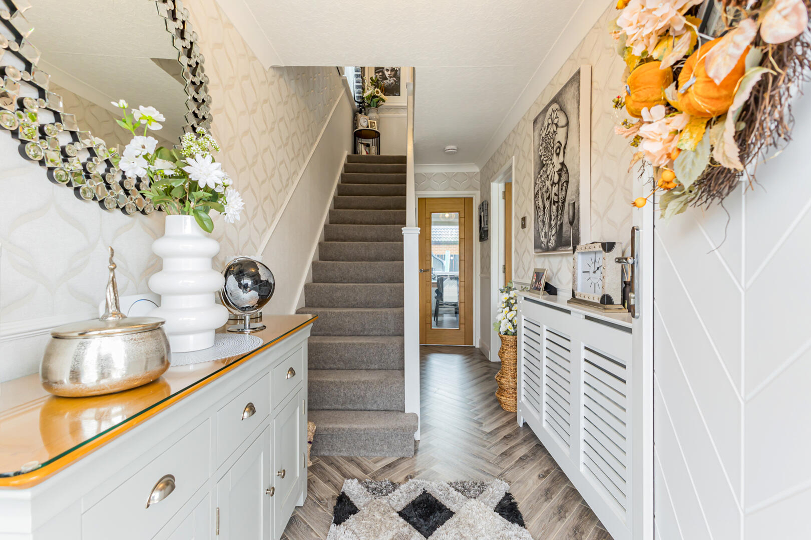 Entrance Hall - 4.32m x 1.83m (14'2" x 6') - Parquet laminate wood flooring, cornice ceiling, dado rail