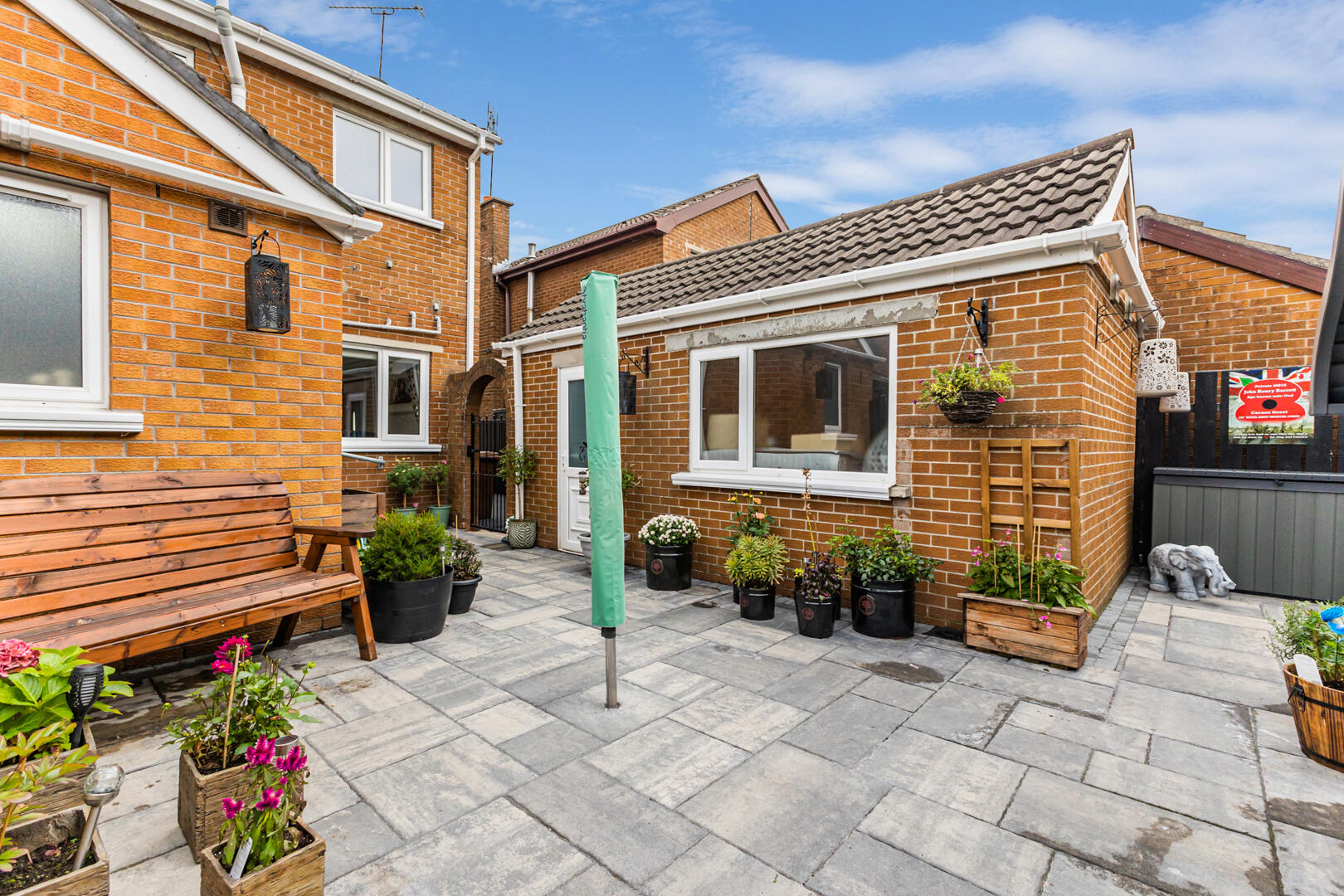 Outside - Fully enclosed paved courtyard to front, gate access to tarmac driveway providing ample off streetcar parking and leading to detached garage. To the rear a fully enclosed low maintenance space with paving ideal for outdoor entertaining, young children and pets alike. Beautiful, raised flowerbed with shrubs adding colour to the space. Gate access to driveway. Outside water, outside light