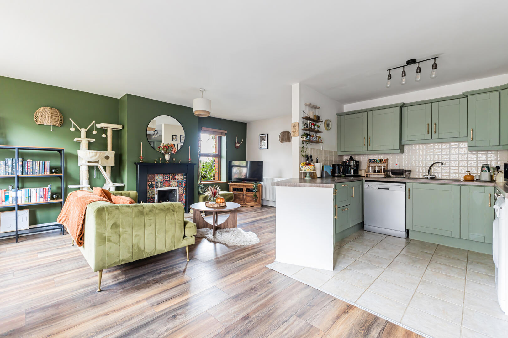 Open Plan Kitchen / Living / Dining with Bespoke hand Painted Kitchen