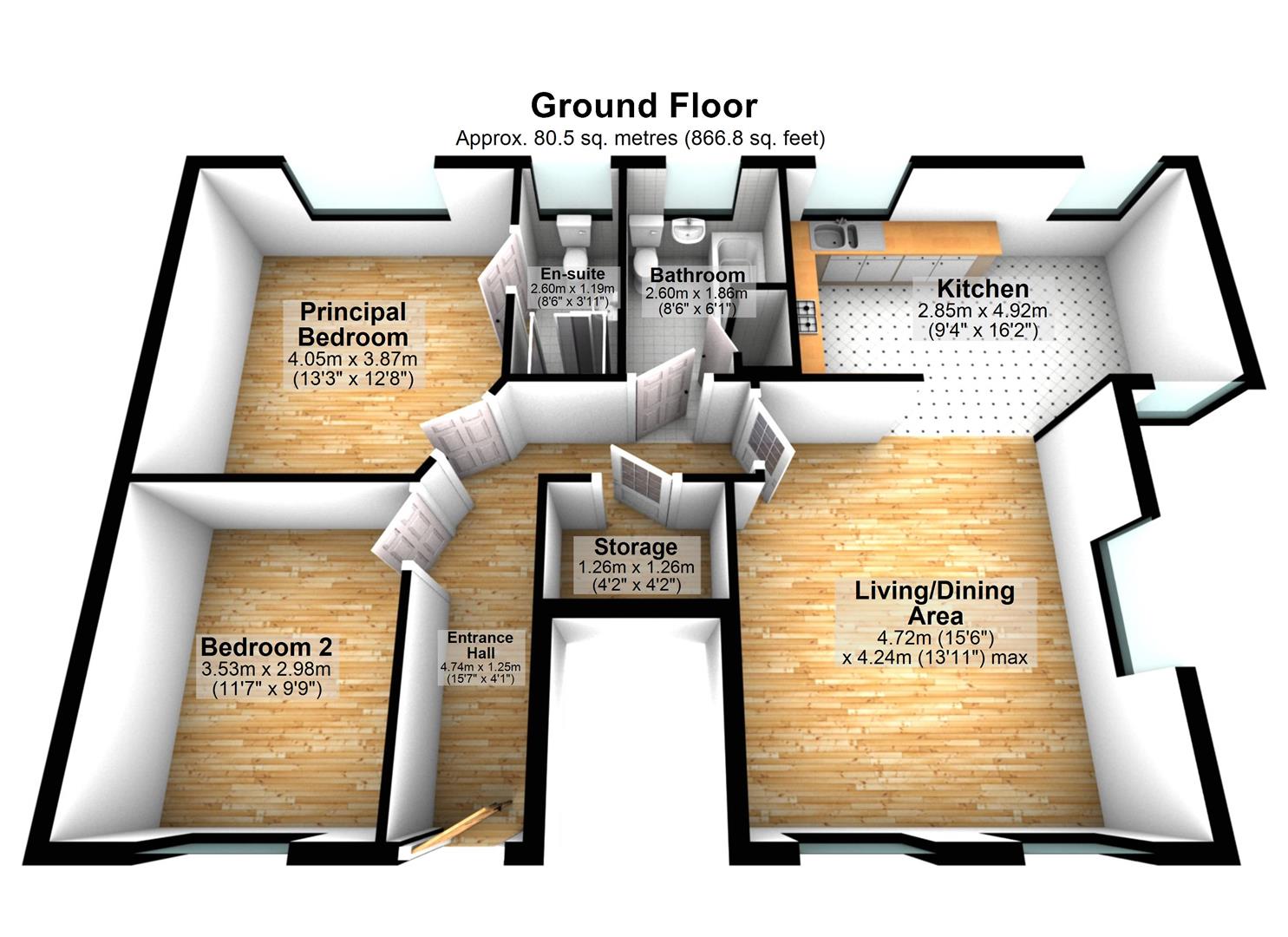 Two Well Proportioned Bedrooms, Principal Benefitting Ensuite Shower Room