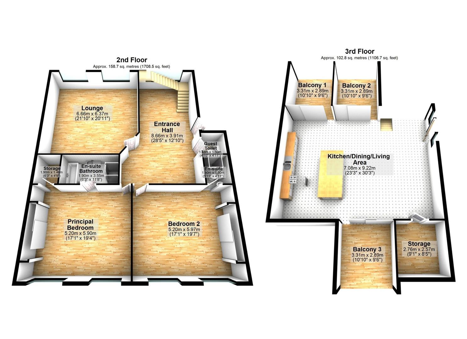 - Two Generous Sized Bedrooms With Built-in Wardrobes and Ensuite Facilities