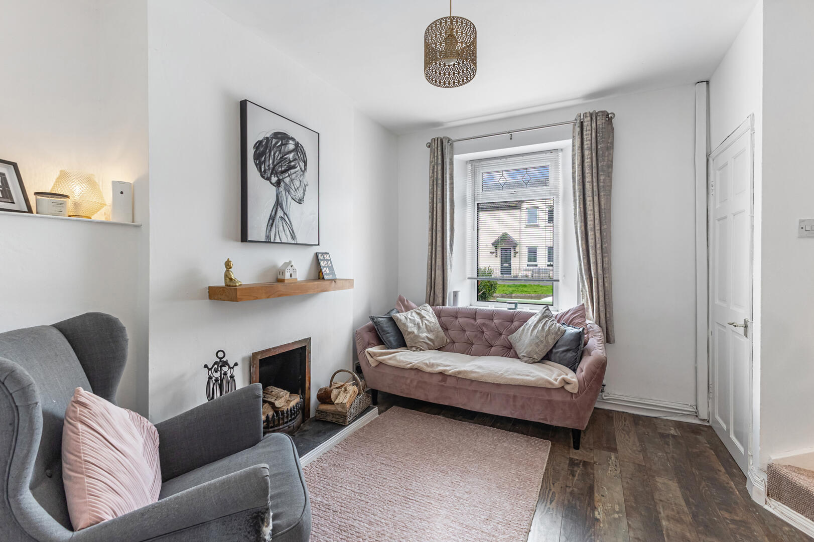 Bright Living Room with Feature Open Fire