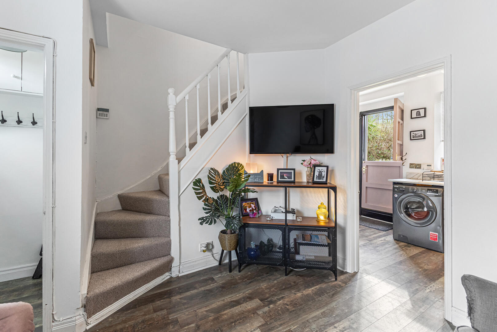 Entrance Hallway - Laminate wood flooring, cloaks area, access to electrics.