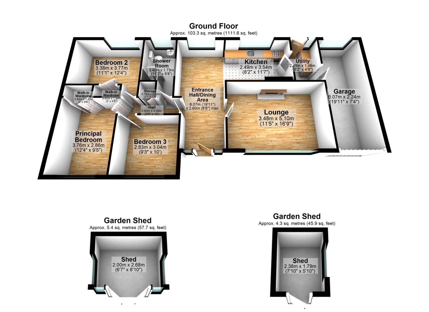The property boasts three generously sized bedrooms, and a bright, spacious family lounge with feature electric fire. At the heart of the home, the open plan kitchen flows seamlessly into the dining hall, creating a perfect space for entertaining and everyday living. The bespoke fully fitted kitchen includes a range of integrated appliances and enjoys views over the rear garden. A separate utility room and integral garage add both practicality and convenience.