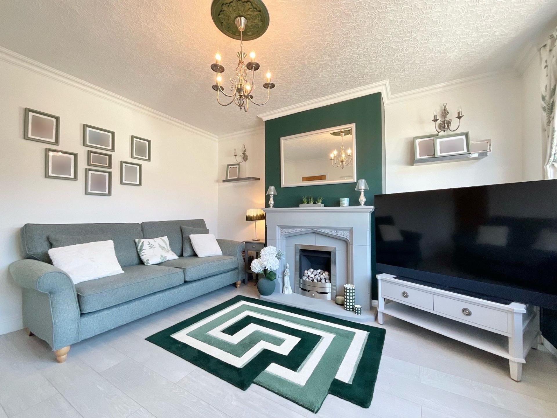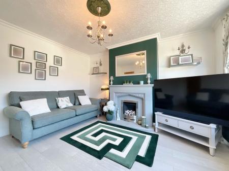 - Bright living room with large bay window and cosy fireplace plus separate lounge.