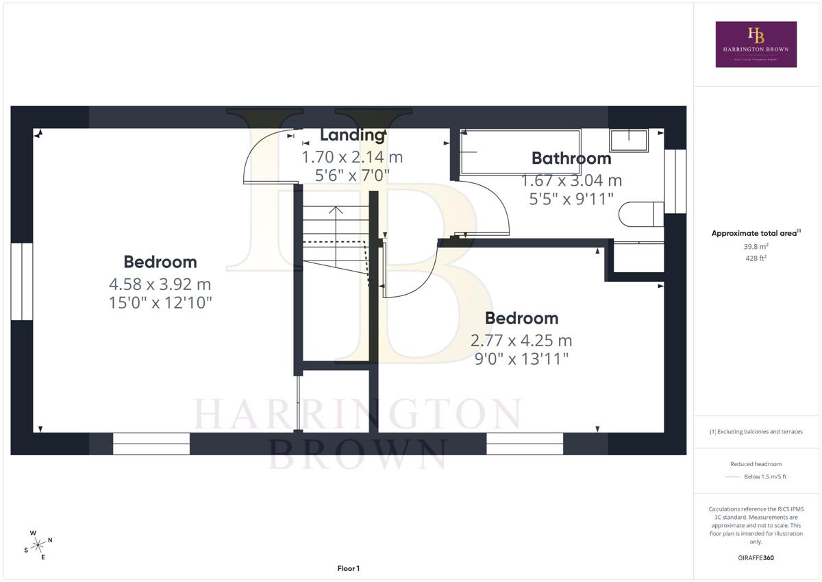Bedroom 1 w: 4.59m x l: 3.92m (w: 15' 1" x l: 12' 10")