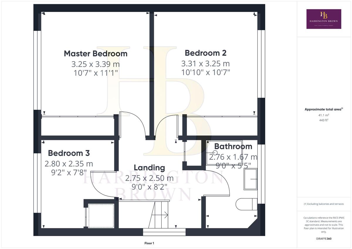 Master bedroom w: 3.25m x l: 3.39m (w: 10' 8" x l: 11' 1")