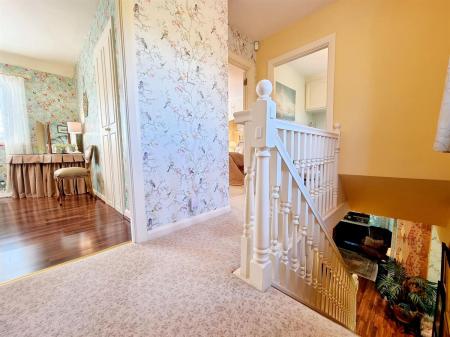 Upstairs, there is a luxurious master with en-suite, two generously sized double bedrooms with fitted wardrobes and bay windows, a single bedroom with built in storage and a family bathroom.
