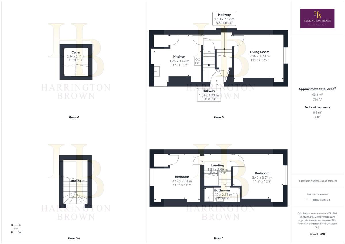 Landing w: 1.13m x l: 2.12m (w: 3' 8" x l: 6' 11")